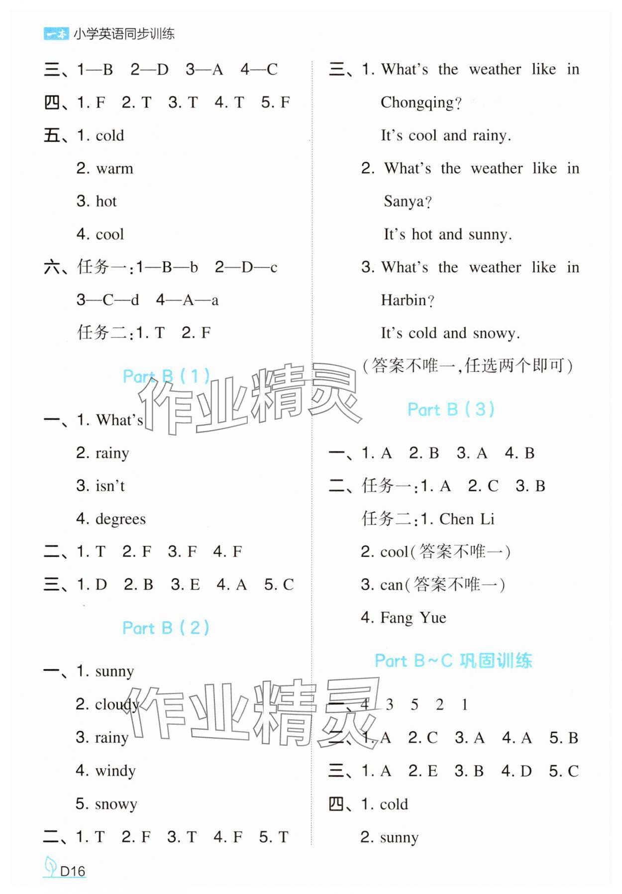 注:目前有些书本章节名称可能整理的还不是很完善,但都是按照顺序排列的,请同学们按照顺序仔细查找。练习册 2025年一本同步训练四年级英语下册人教版 答案主要是用来给同学们做完题方便对答案用的,请勿直接抄袭。