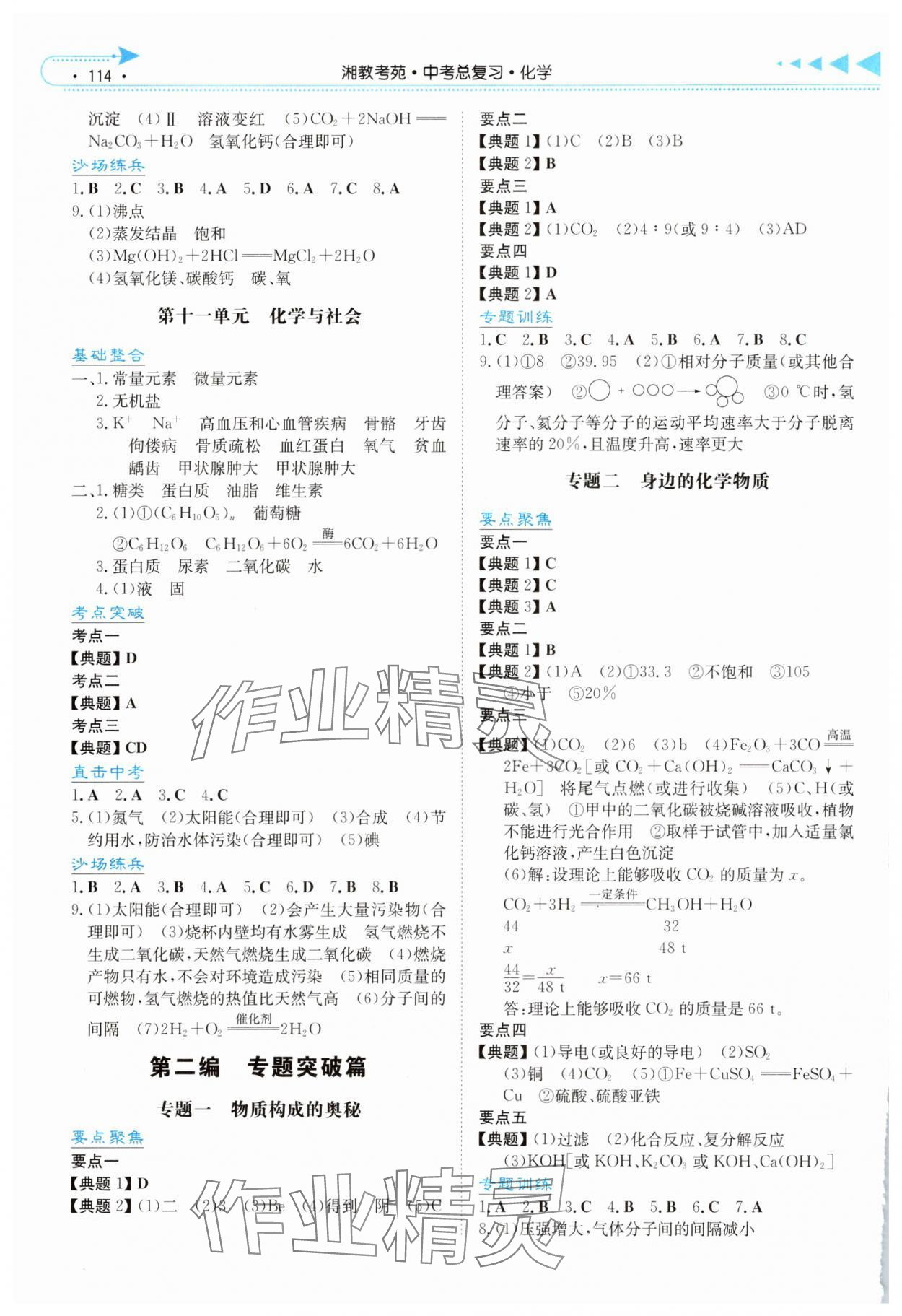 注:目前有些书本章节名称可能整理的还不是很完善,但都是按照顺序排列的,请同学们按照顺序仔细查找。练习册 2025年湘教考苑中考总复习化学长沙版 答案主要是用来给同学们做完题方便对答案用的,请勿直接抄袭。