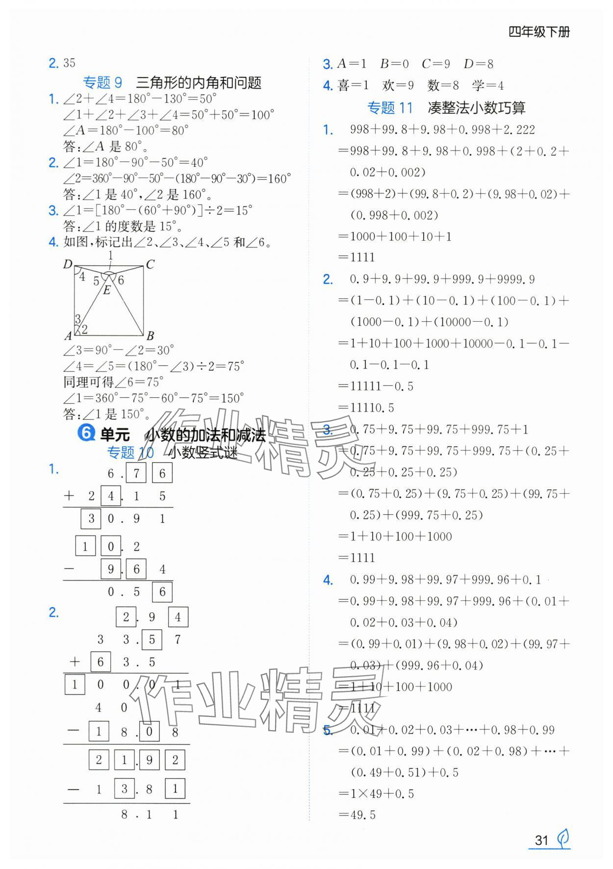 注:目前有些书本章节名称可能整理的还不是很完善,但都是按照顺序排列的,请同学们按照顺序仔细查找。练习册 2025年一本同步训练四年级数学下册人教版浙江专版 答案主要是用来给同学们做完题方便对答案用的,请勿直接抄袭。