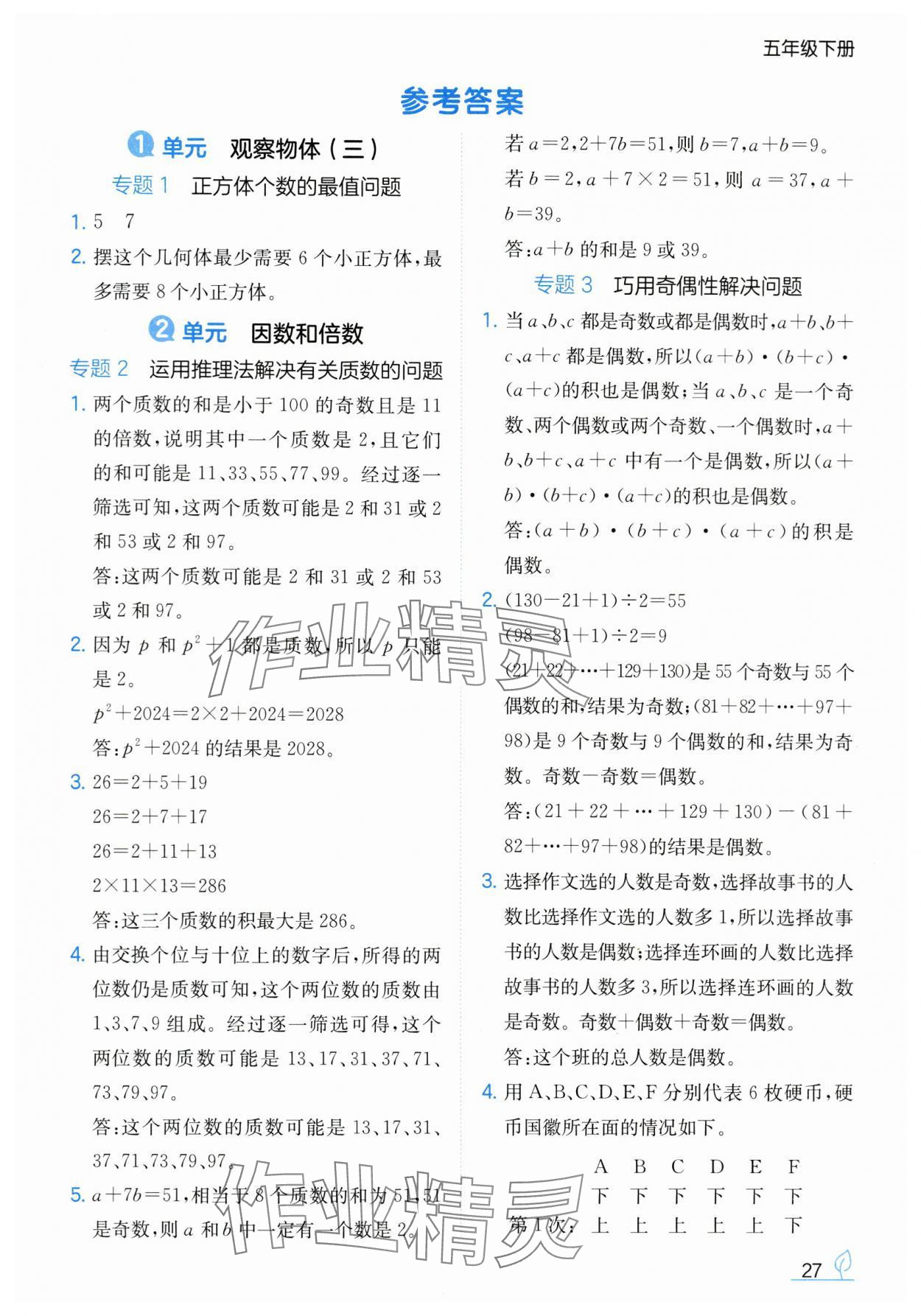 注:目前有些书本章节名称可能整理的还不是很完善,但都是按照顺序排列的,请同学们按照顺序仔细查找。练习册 2025年一本同步训练五年级数学下册人教版浙江专版 答案主要是用来给同学们做完题方便对答案用的,请勿直接抄袭。