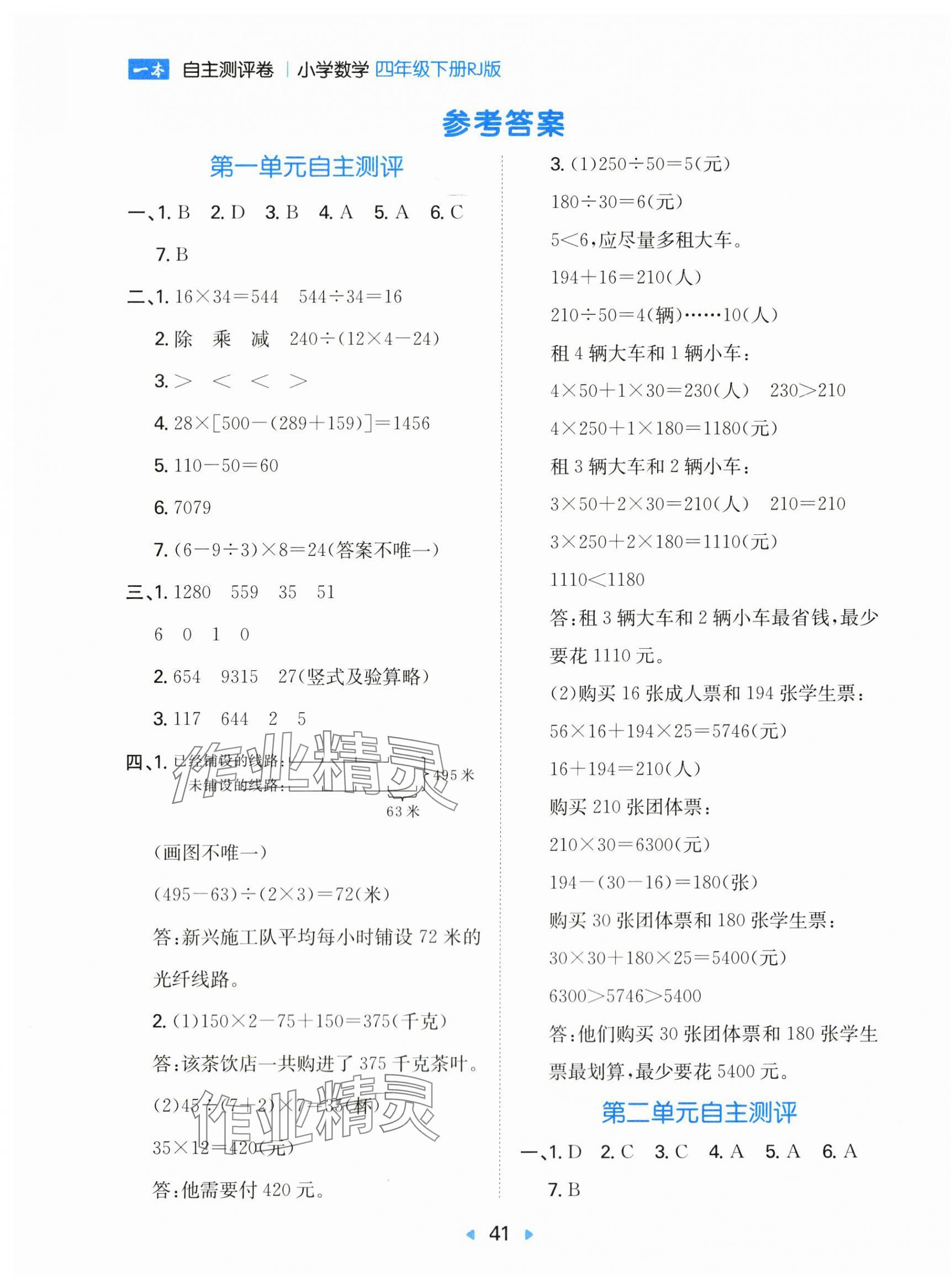 注:目前有些书本章节名称可能整理的还不是很完善,但都是按照顺序排列的,请同学们按照顺序仔细查找。练习册 2025年一本同步训练四年级数学下册人教版浙江专版 答案主要是用来给同学们做完题方便对答案用的,请勿直接抄袭。
