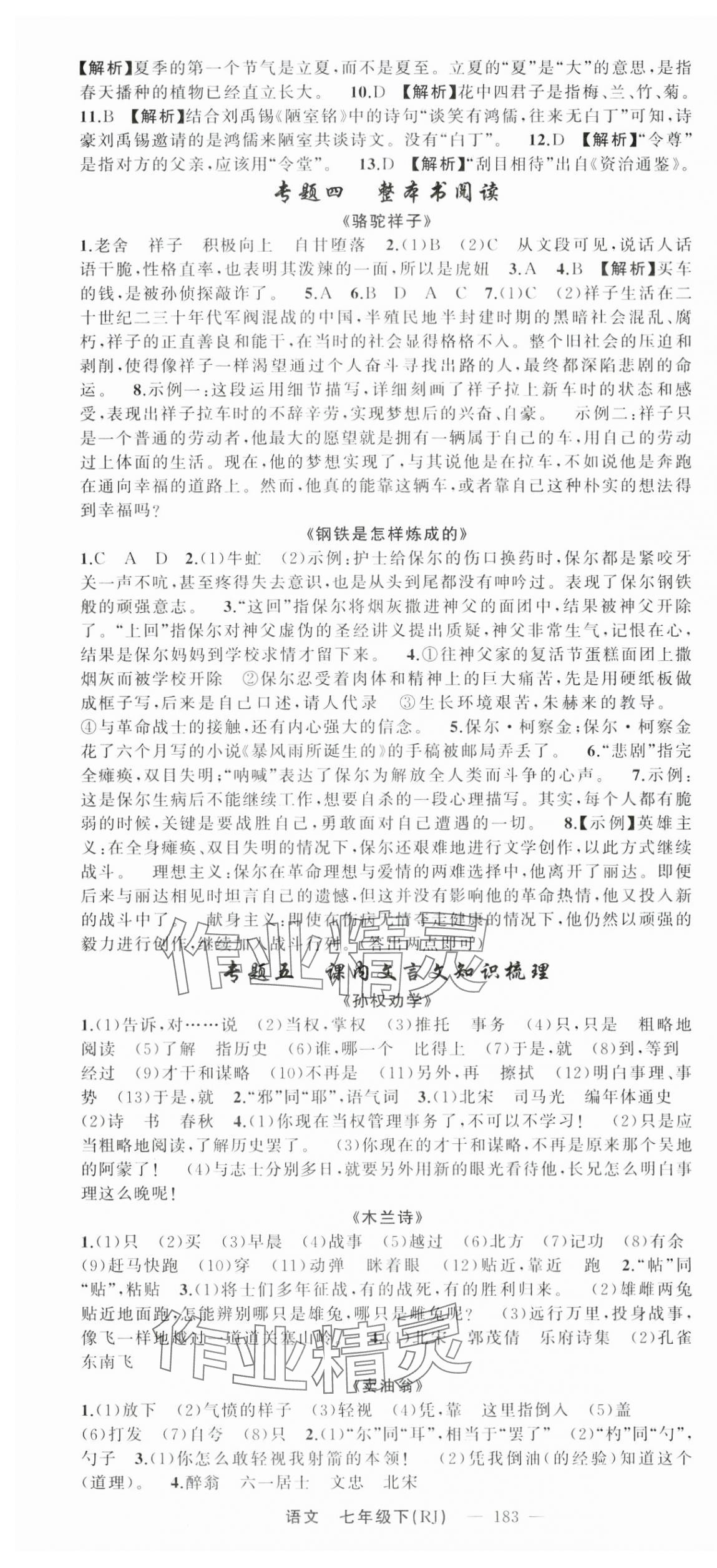 注:目前有些书本章节名称可能整理的还不是很完善,但都是按照顺序排列的,请同学们按照顺序仔细查找。练习册 2025年原创新课堂七年级语文下册人教版贵州专版 答案主要是用来给同学们做完题方便对答案用的,请勿直接抄袭。