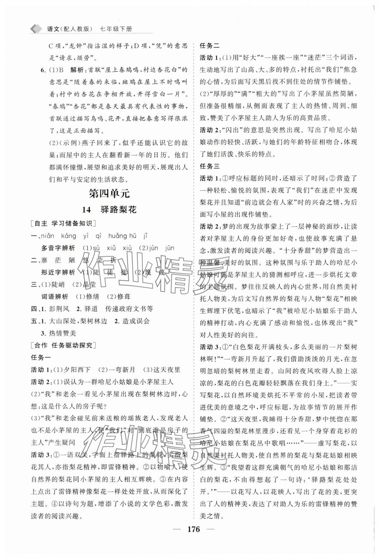 注:目前有些书本章节名称可能整理的还不是很完善,但都是按照顺序排列的,请同学们按照顺序仔细查找。练习册 2025年新课程同步练习册七年级语文下册人教版 答案主要是用来给同学们做完题方便对答案用的,请勿直接抄袭。