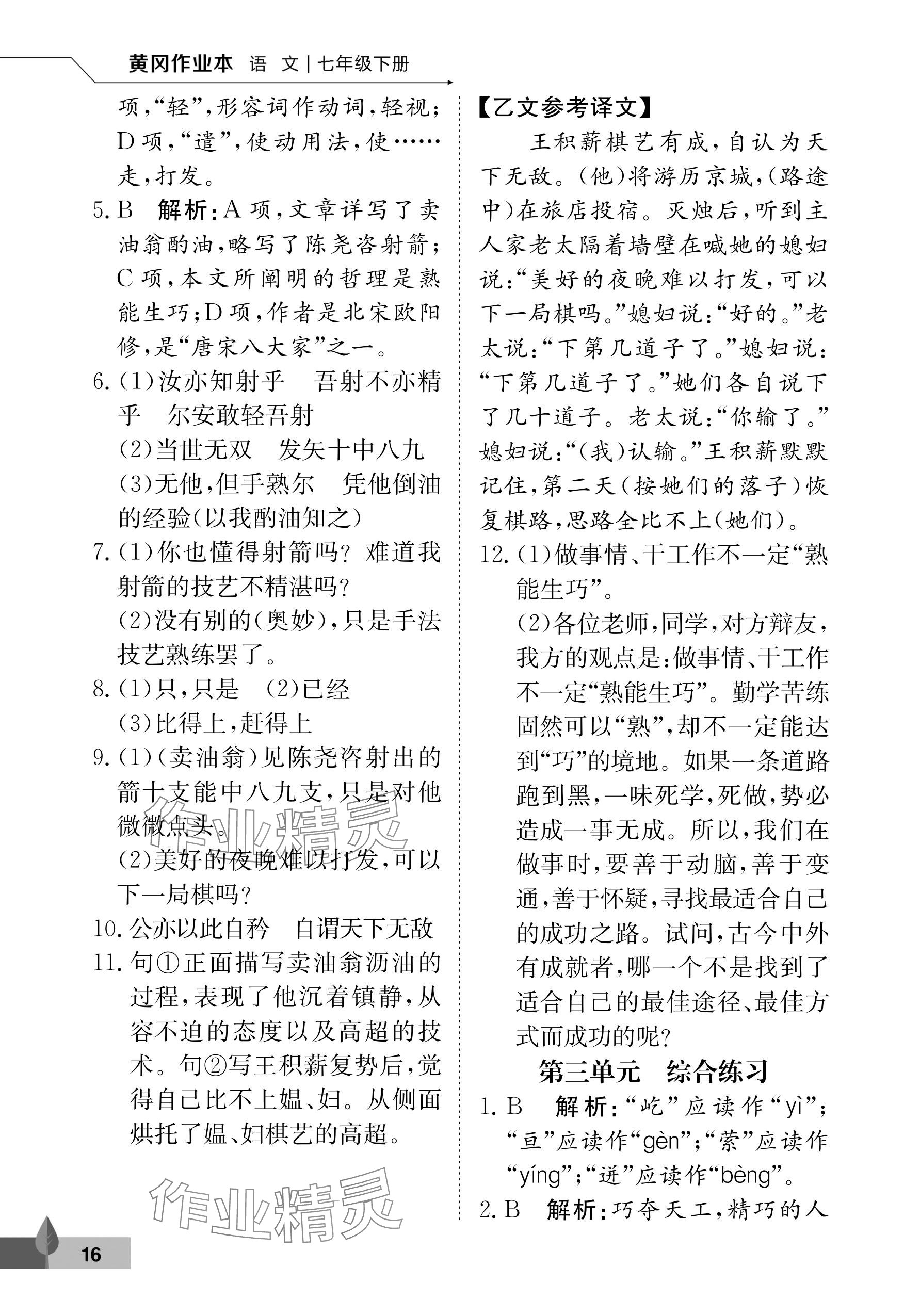 注:目前有些书本章节名称可能整理的还不是很完善,但都是按照顺序排列的,请同学们按照顺序仔细查找。练习册 2025年黄冈作业本武汉大学出版社七年级语文下册人教版 答案主要是用来给同学们做完题方便对答案用的,请勿直接抄袭。