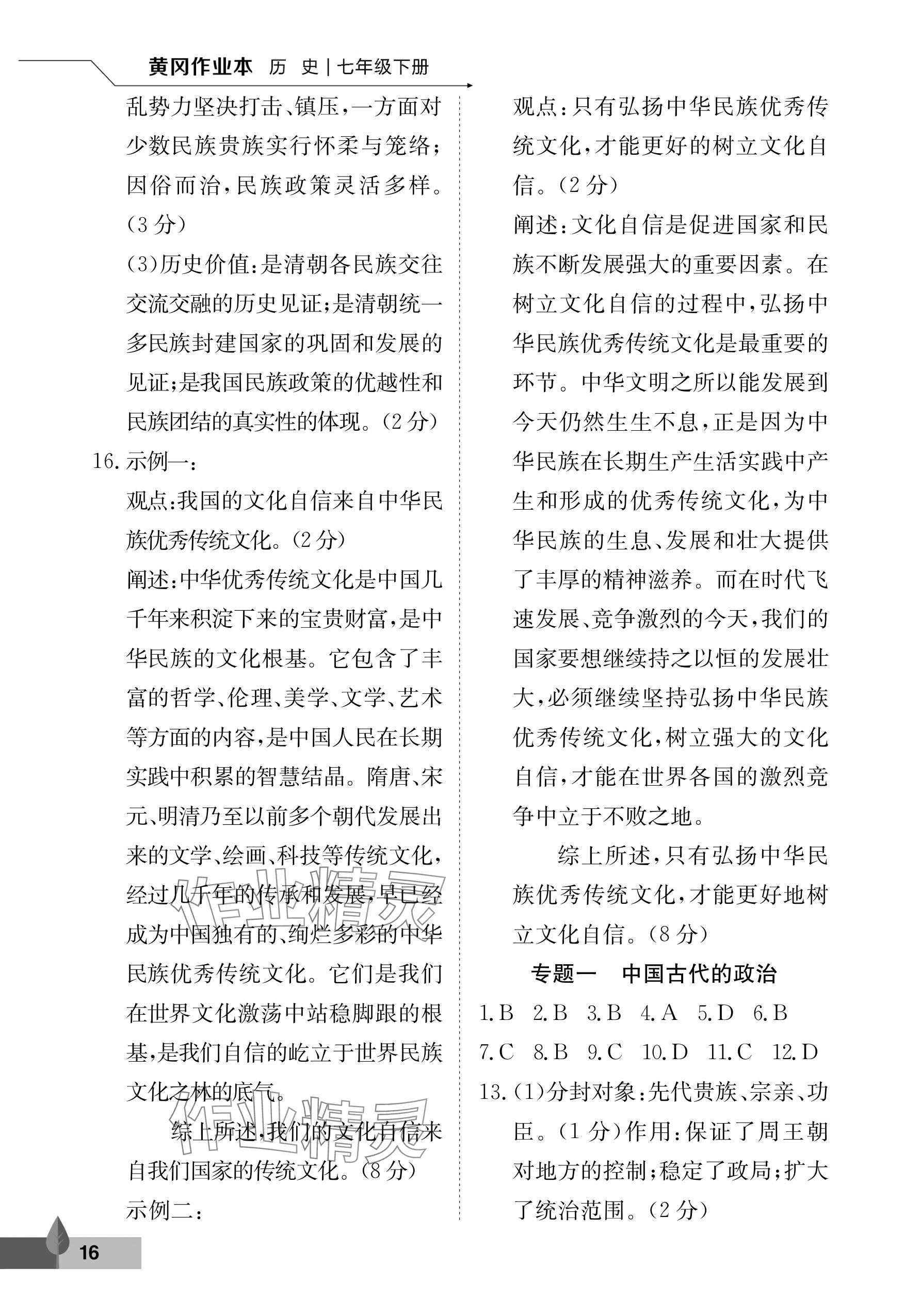 注:目前有些书本章节名称可能整理的还不是很完善,但都是按照顺序排列的,请同学们按照顺序仔细查找。练习册 2025年黄冈作业本武汉大学出版社七年级历史下册 答案主要是用来给同学们做完题方便对答案用的,请勿直接抄袭。