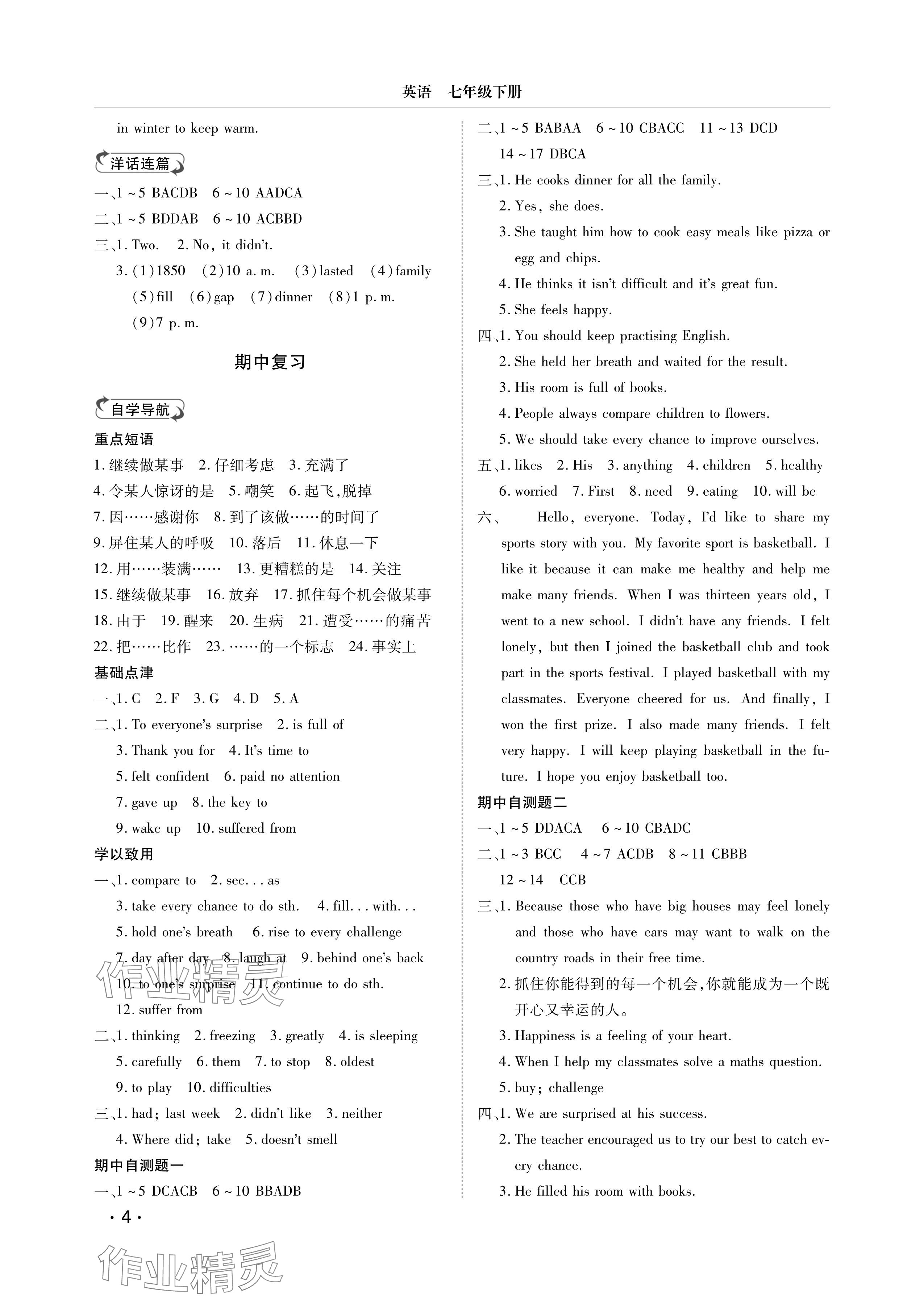 注:目前有些书本章节名称可能整理的还不是很完善,但都是按照顺序排列的,请同学们按照顺序仔细查找。练习册 2025年行知天下七年级英语下册外研版 答案主要是用来给同学们做完题方便对答案用的,请勿直接抄袭。