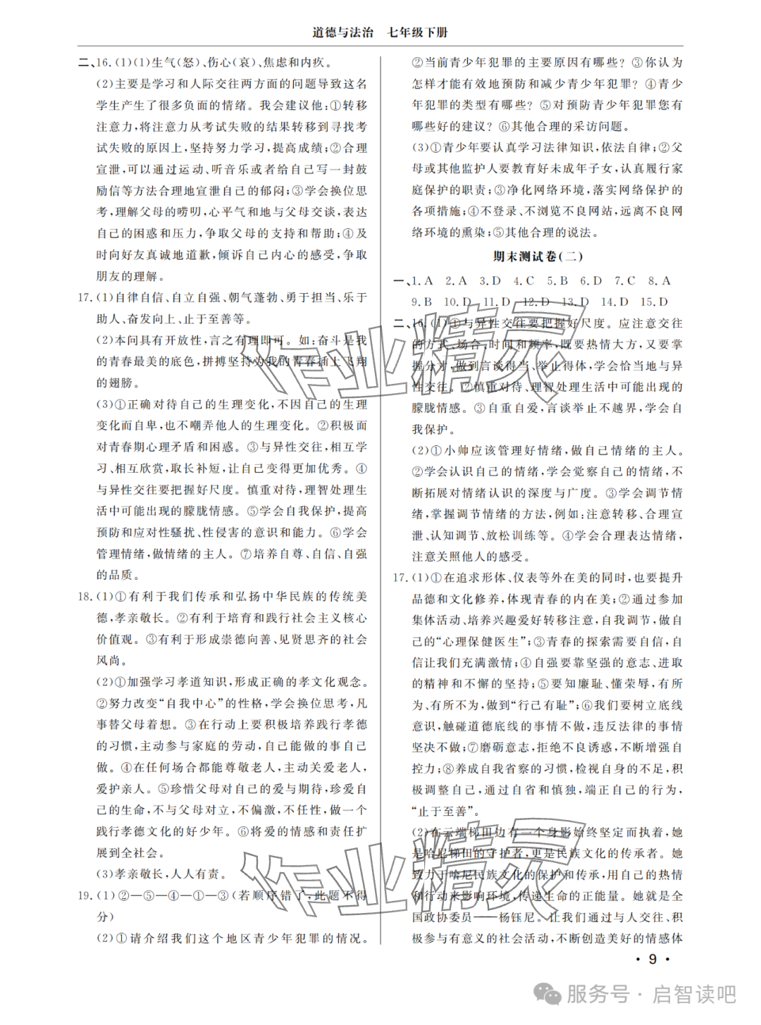 注:目前有些书本章节名称可能整理的还不是很完善,但都是按照顺序排列的,请同学们按照顺序仔细查找。练习册 2025年同步练习册分层检测卷七年级道德与法治下册人教版 答案主要是用来给同学们做完题方便对答案用的,请勿直接抄袭。
