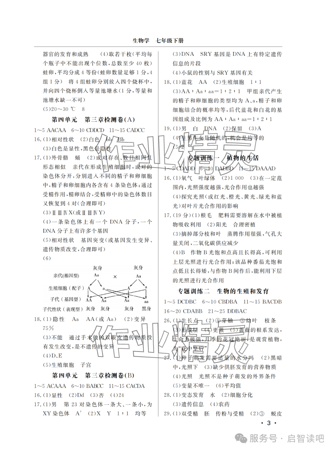 注:目前有些书本章节名称可能整理的还不是很完善,但都是按照顺序排列的,请同学们按照顺序仔细查找。练习册 2025年同步练习册分层检测卷七年级生物下册济南版 答案主要是用来给同学们做完题方便对答案用的,请勿直接抄袭。