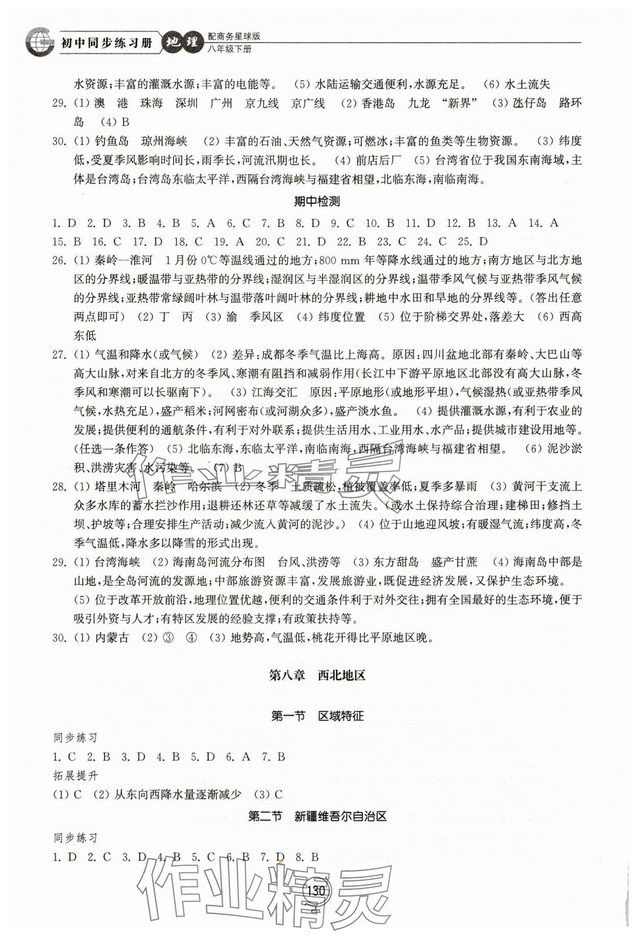2025年同步练习册山东教育出版社八年级地理下册商务星球版