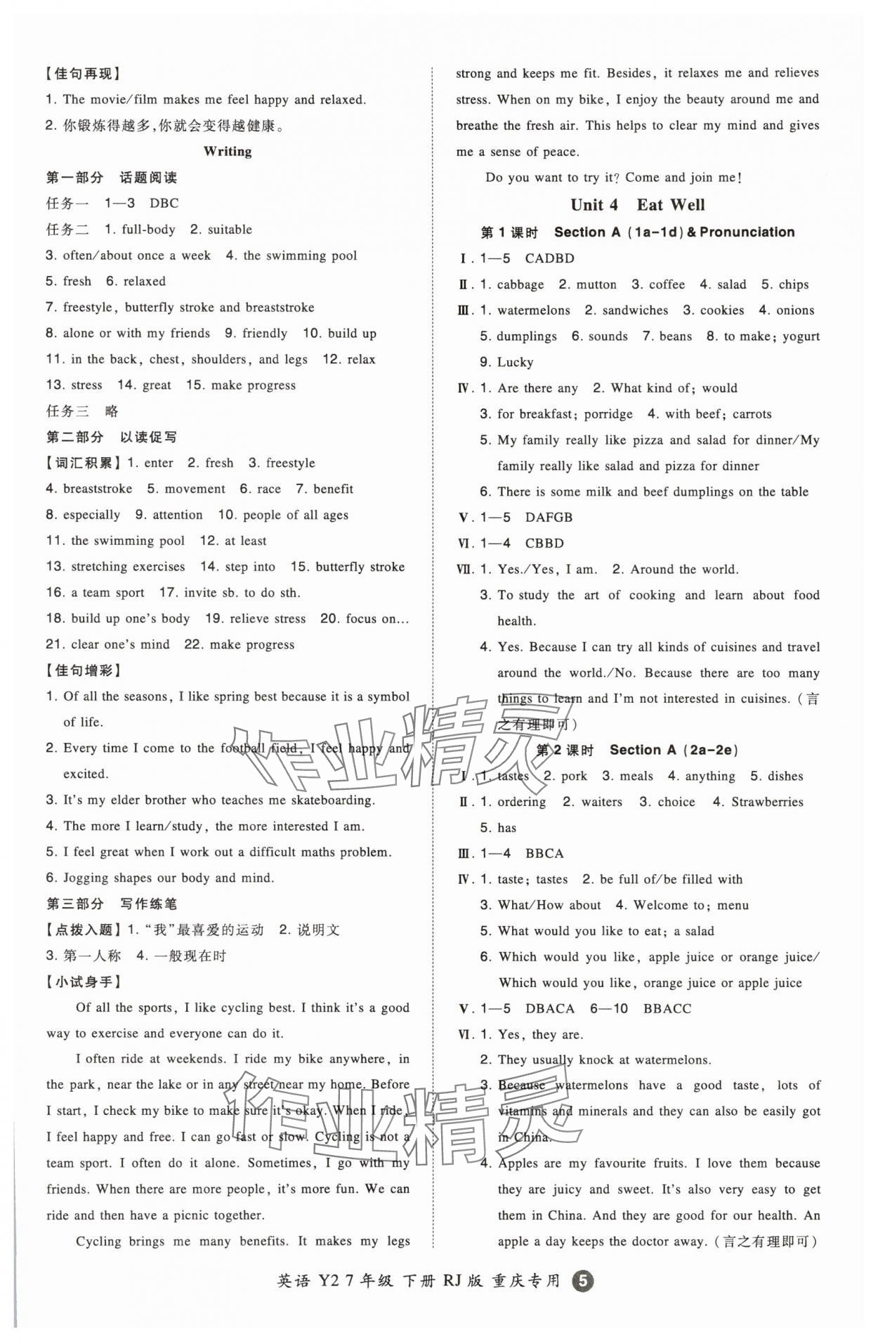 注:目前有些书本章节名称可能整理的还不是很完善,但都是按照顺序排列的,请同学们按照顺序仔细查找。练习册 2025年一本七年级英语下册人教版重庆专版 答案主要是用来给同学们做完题方便对答案用的,请勿直接抄袭。