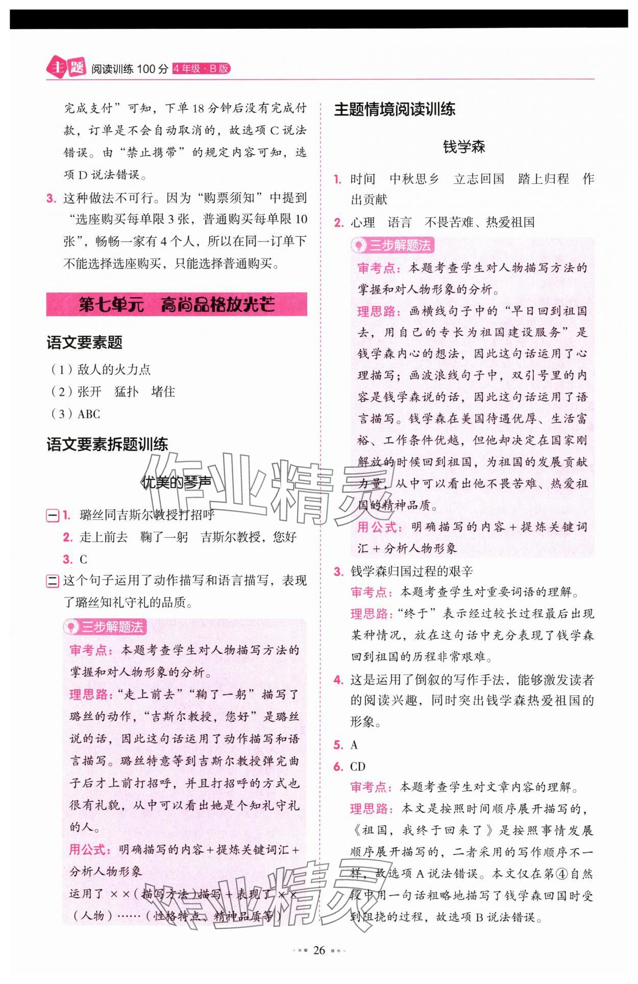 注:目前有些书本章节名称可能整理的还不是很完善,但都是按照顺序排列的,请同学们按照顺序仔细查找。练习册 2025年畅阅读主题阅读训练100分四年级B版浙江专版 答案主要是用来给同学们做完题方便对答案用的,请勿直接抄袭。
