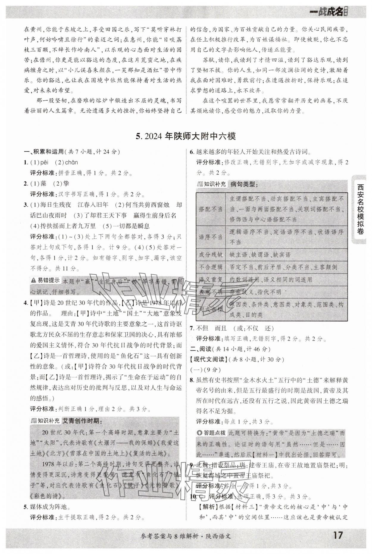 注:目前有些书本章节名称可能整理的还不是很完善,但都是按照顺序排列的,请同学们按照顺序仔细查找。练习册 2025年一战成名中考真题与拓展训练语文陕西专版 答案主要是用来给同学们做完题方便对答案用的,请勿直接抄袭。