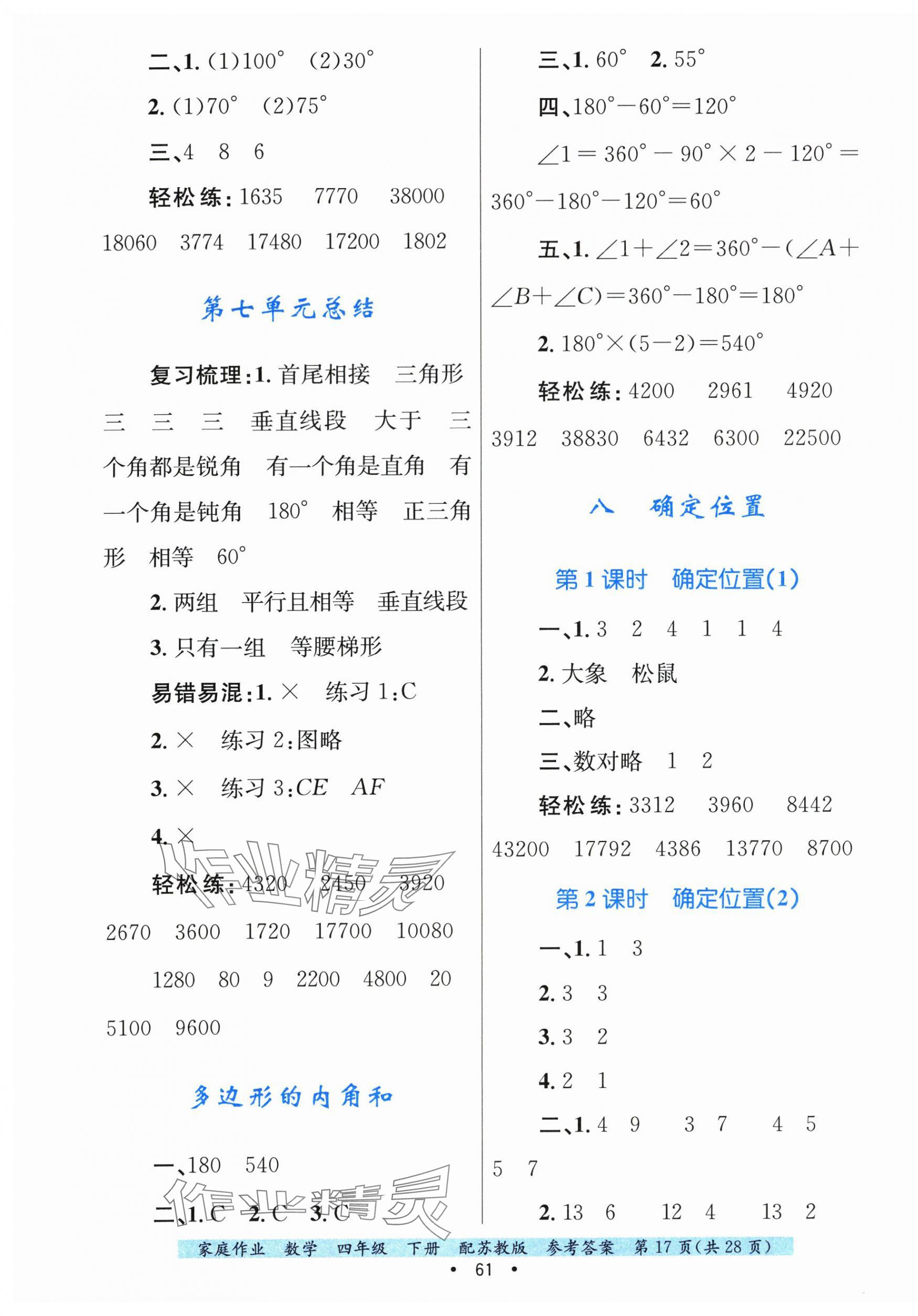 注:目前有些书本章节名称可能整理的还不是很完善,但都是按照顺序排列的,请同学们按照顺序仔细查找。练习册 2025年家庭作业四年级数学下册苏教版 答案主要是用来给同学们做完题方便对答案用的,请勿直接抄袭。