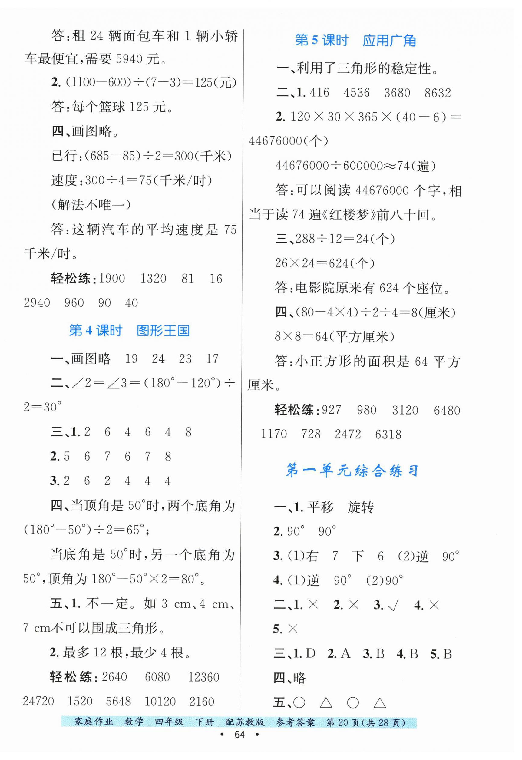 注:目前有些书本章节名称可能整理的还不是很完善,但都是按照顺序排列的,请同学们按照顺序仔细查找。练习册 2025年家庭作业四年级数学下册苏教版 答案主要是用来给同学们做完题方便对答案用的,请勿直接抄袭。