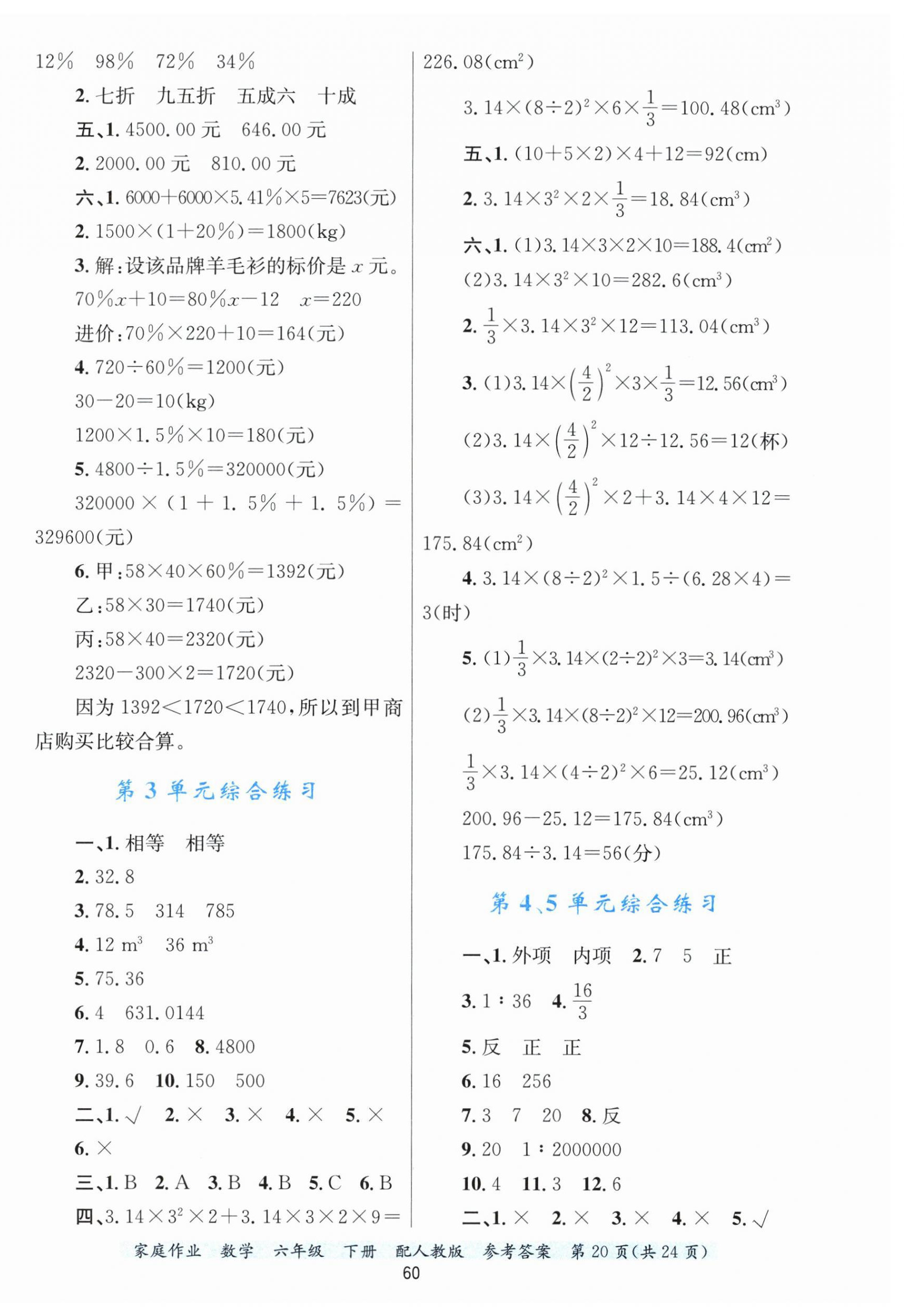 注:目前有些书本章节名称可能整理的还不是很完善,但都是按照顺序排列的,请同学们按照顺序仔细查找。练习册 2025年家庭作业六年级数学下册人教版 答案主要是用来给同学们做完题方便对答案用的,请勿直接抄袭。