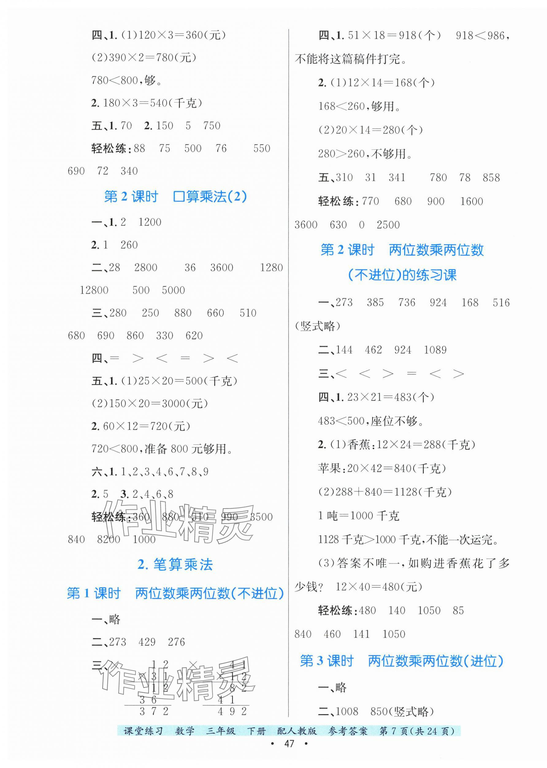 注:目前有些书本章节名称可能整理的还不是很完善,但都是按照顺序排列的,请同学们按照顺序仔细查找。练习册 2025年课堂练习三年级数学下册人教版 答案主要是用来给同学们做完题方便对答案用的,请勿直接抄袭。
