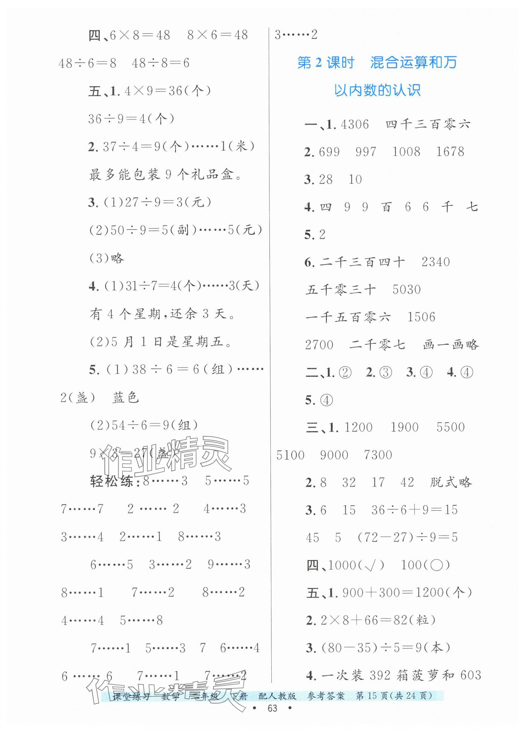 注:目前有些书本章节名称可能整理的还不是很完善,但都是按照顺序排列的,请同学们按照顺序仔细查找。练习册 2025年课堂练习二年级数学下册人教版 答案主要是用来给同学们做完题方便对答案用的,请勿直接抄袭。