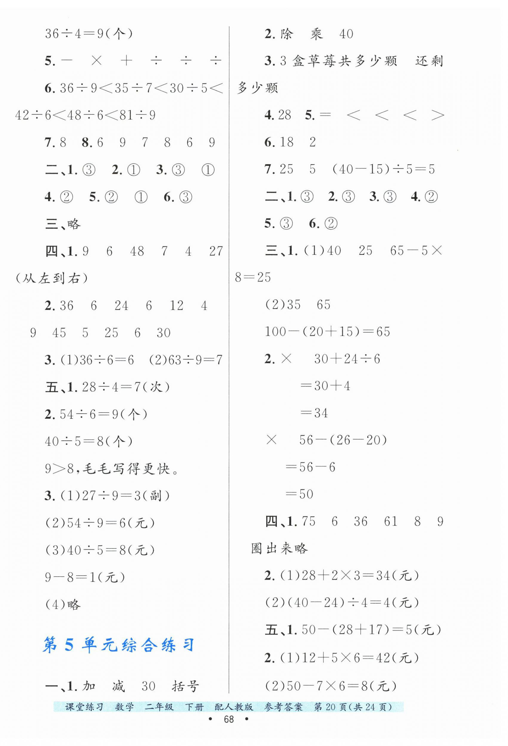 注:目前有些书本章节名称可能整理的还不是很完善,但都是按照顺序排列的,请同学们按照顺序仔细查找。练习册 2025年课堂练习二年级数学下册人教版 答案主要是用来给同学们做完题方便对答案用的,请勿直接抄袭。