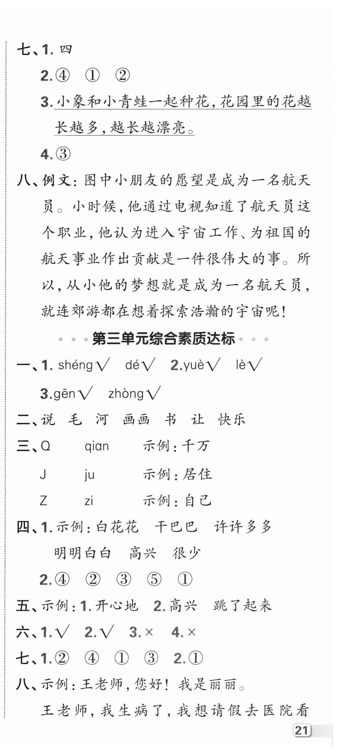 注:目前有些书本章节名称可能整理的还不是很完善,但都是按照顺序排列的,请同学们按照顺序仔细查找。练习册 2025年综合应用创新题典中点一年级语文下册人教版 答案主要是用来给同学们做完题方便对答案用的,请勿直接抄袭。