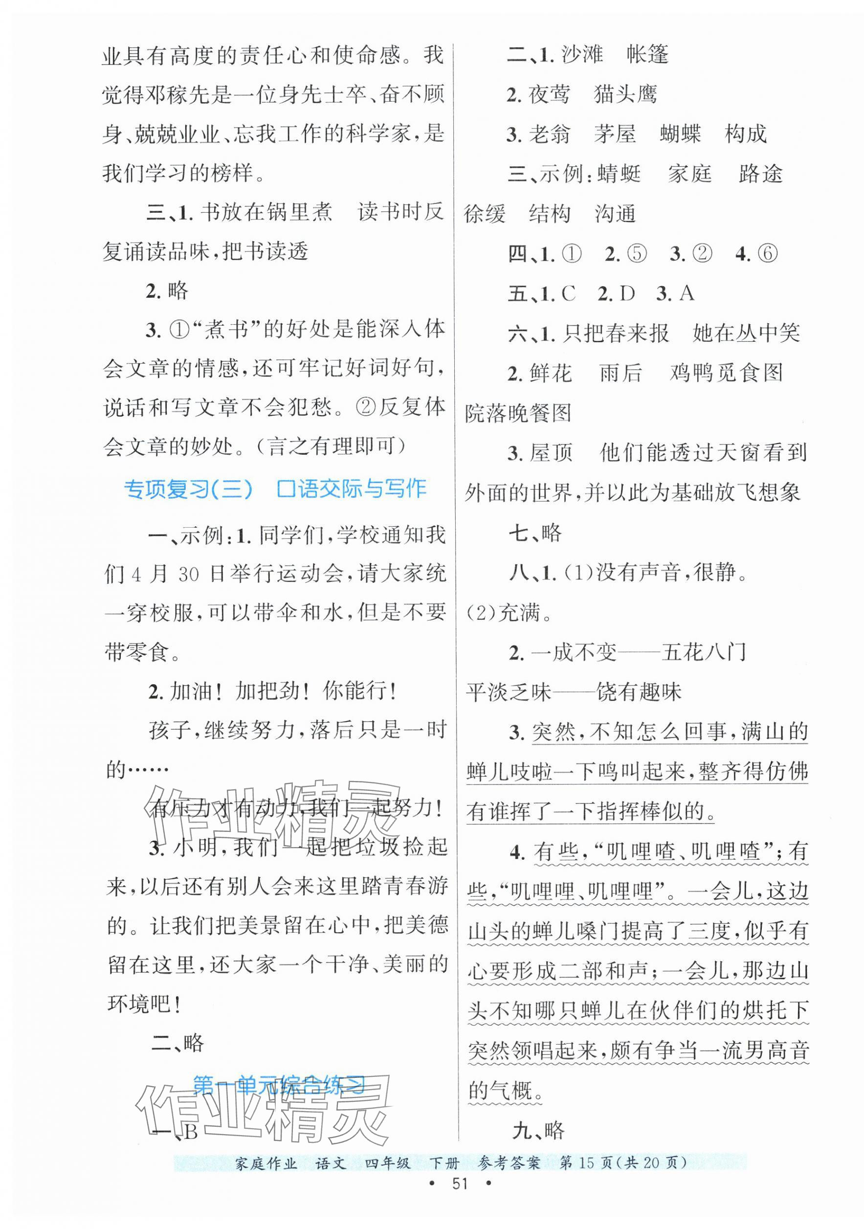 注:目前有些书本章节名称可能整理的还不是很完善,但都是按照顺序排列的,请同学们按照顺序仔细查找。练习册 2025年家庭作业四年级语文下册人教版 答案主要是用来给同学们做完题方便对答案用的,请勿直接抄袭。