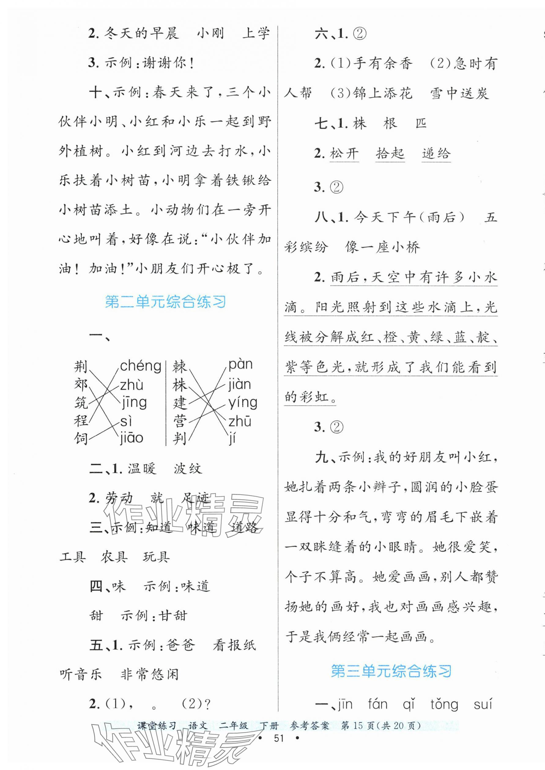 注:目前有些书本章节名称可能整理的还不是很完善,但都是按照顺序排列的,请同学们按照顺序仔细查找。练习册 2025年课堂练习二年级语文下册人教版 答案主要是用来给同学们做完题方便对答案用的,请勿直接抄袭。