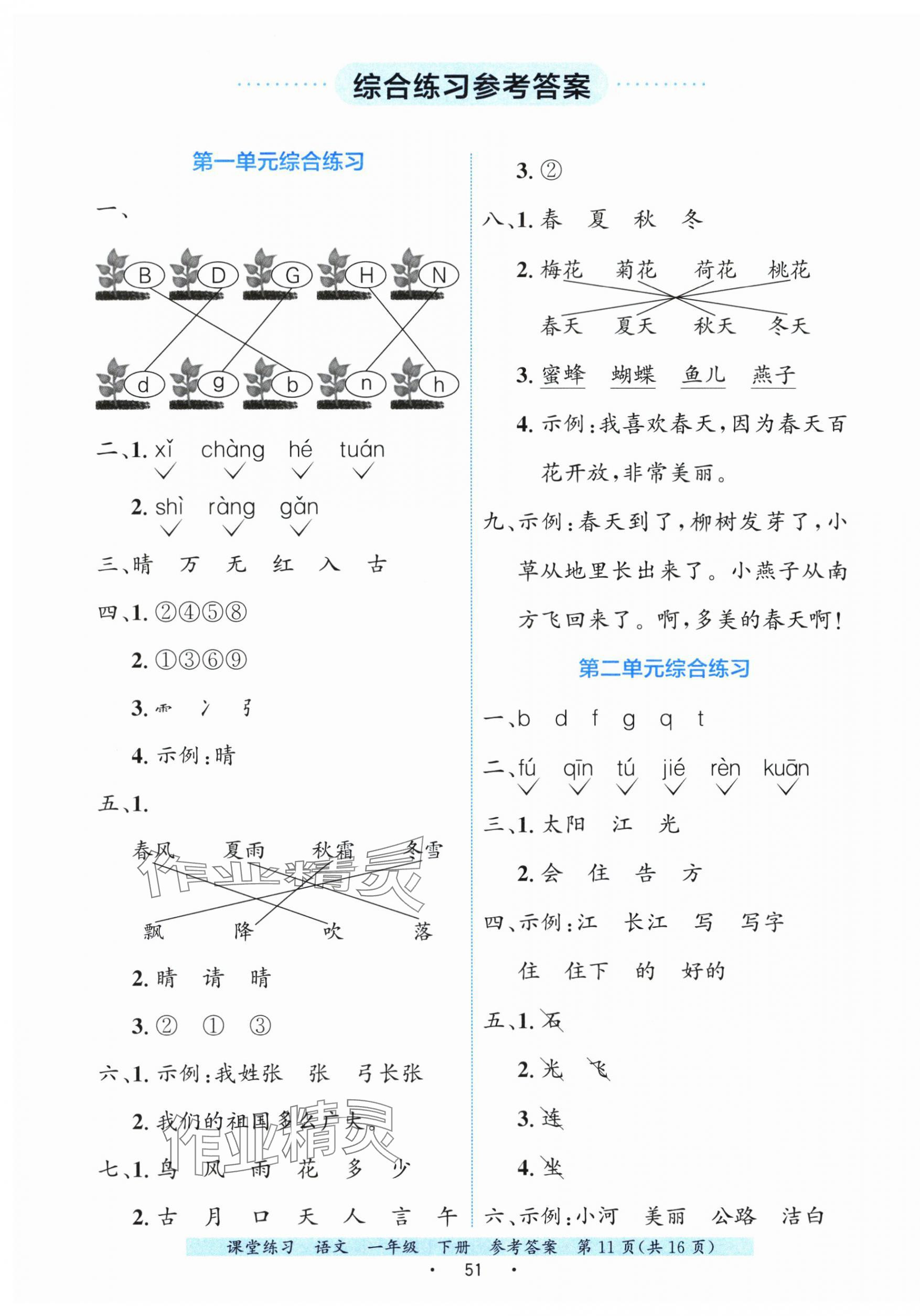 注:目前有些书本章节名称可能整理的还不是很完善,但都是按照顺序排列的,请同学们按照顺序仔细查找。练习册 2025年课堂练习一年级语文下册人教版 答案主要是用来给同学们做完题方便对答案用的,请勿直接抄袭。