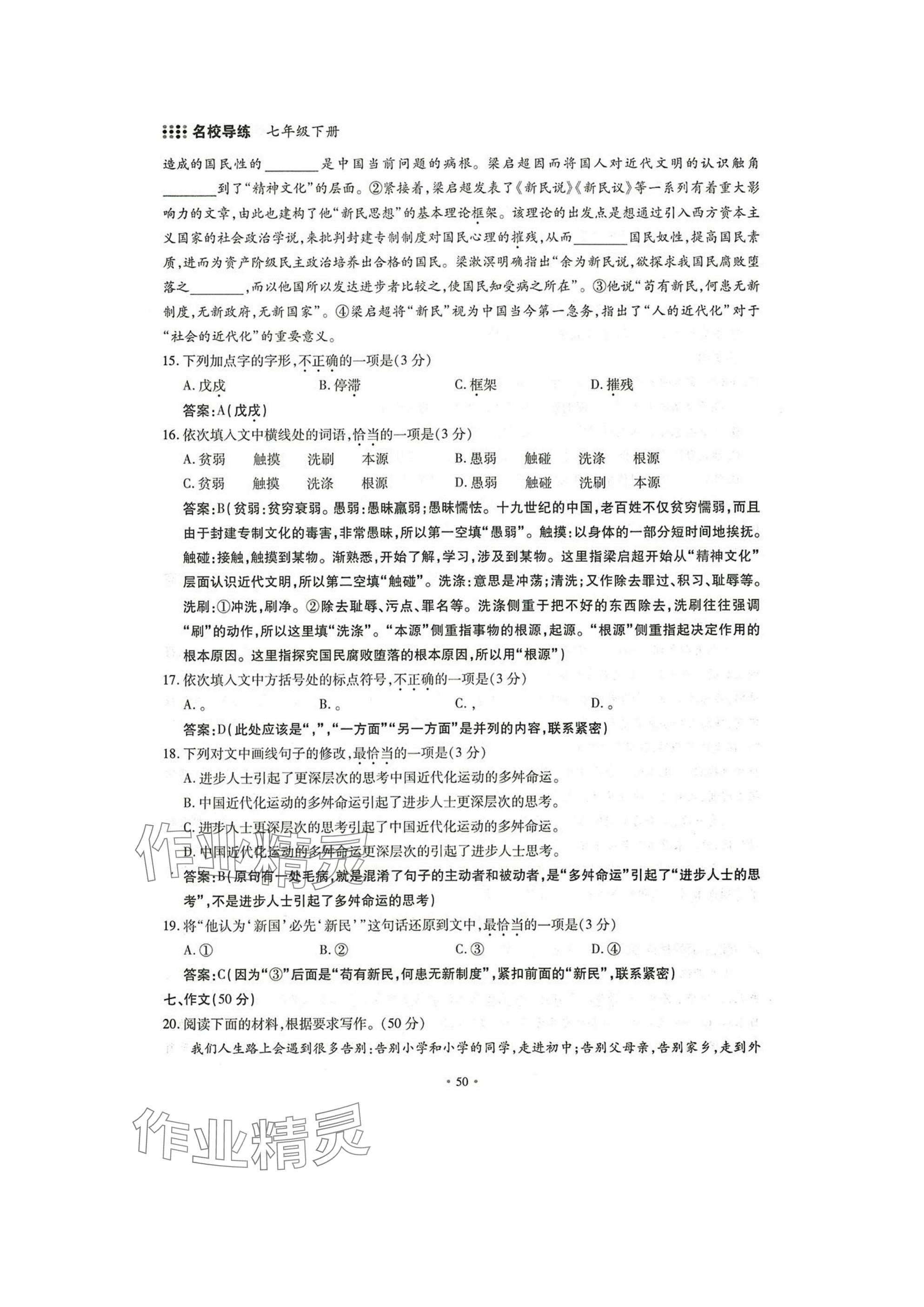 注:目前有些书本章节名称可能整理的还不是很完善,但都是按照顺序排列的,请同学们按照顺序仔细查找。练习册 2025年名校导练七年级语文下册人教版 答案主要是用来给同学们做完题方便对答案用的,请勿直接抄袭。