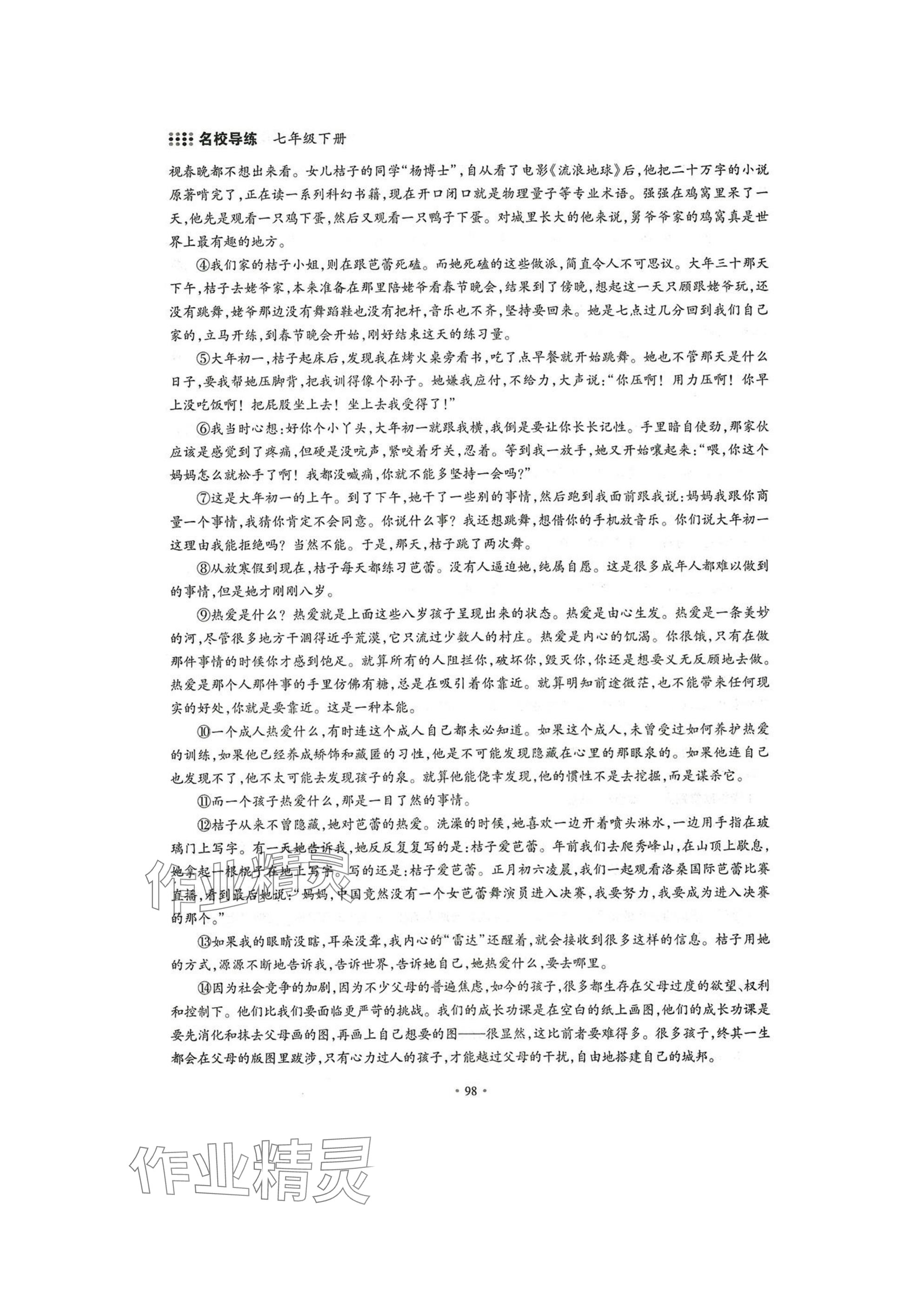注:目前有些书本章节名称可能整理的还不是很完善,但都是按照顺序排列的,请同学们按照顺序仔细查找。练习册 2025年名校导练七年级语文下册人教版 答案主要是用来给同学们做完题方便对答案用的,请勿直接抄袭。