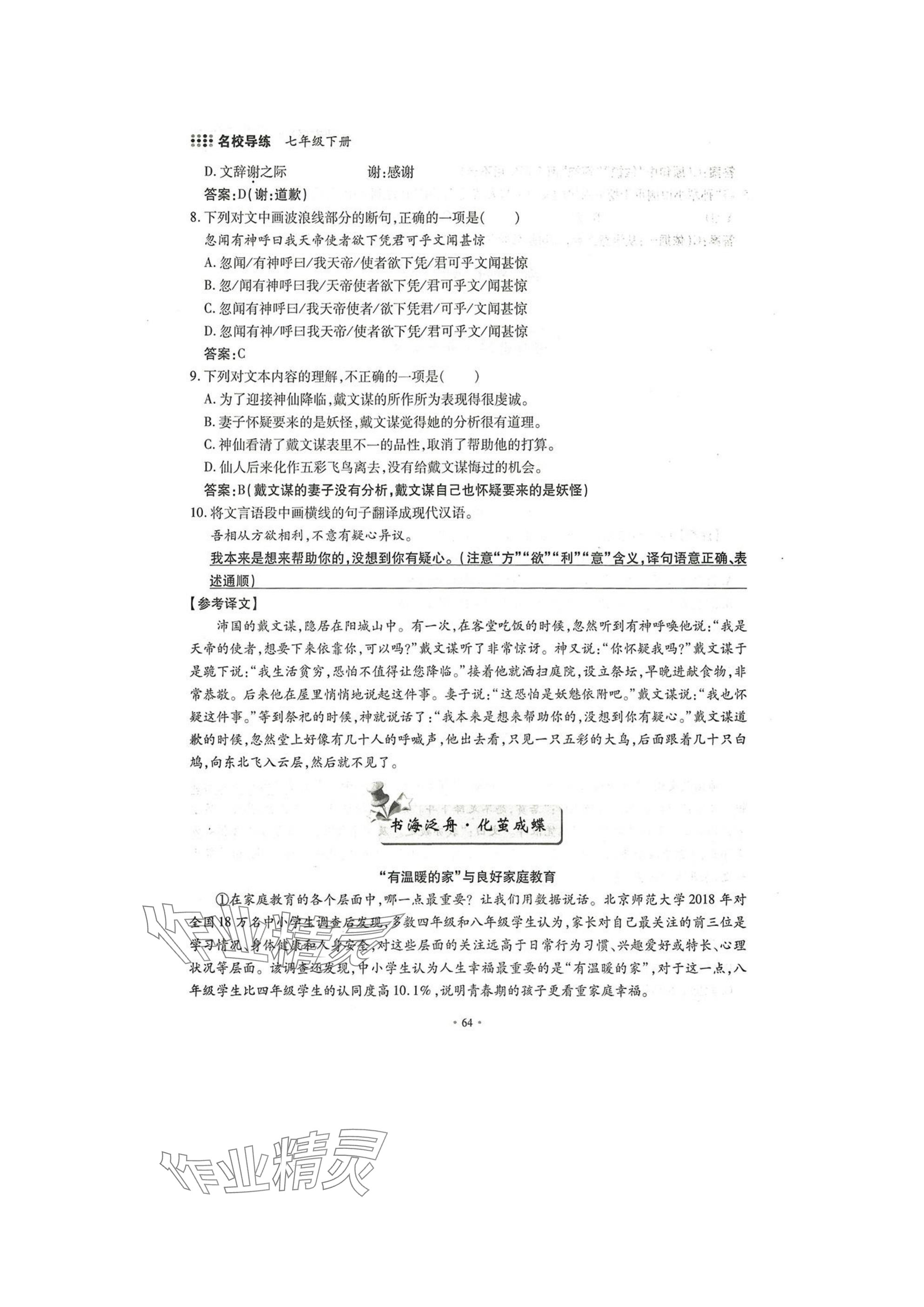 注:目前有些书本章节名称可能整理的还不是很完善,但都是按照顺序排列的,请同学们按照顺序仔细查找。练习册 2025年名校导练七年级语文下册人教版 答案主要是用来给同学们做完题方便对答案用的,请勿直接抄袭。