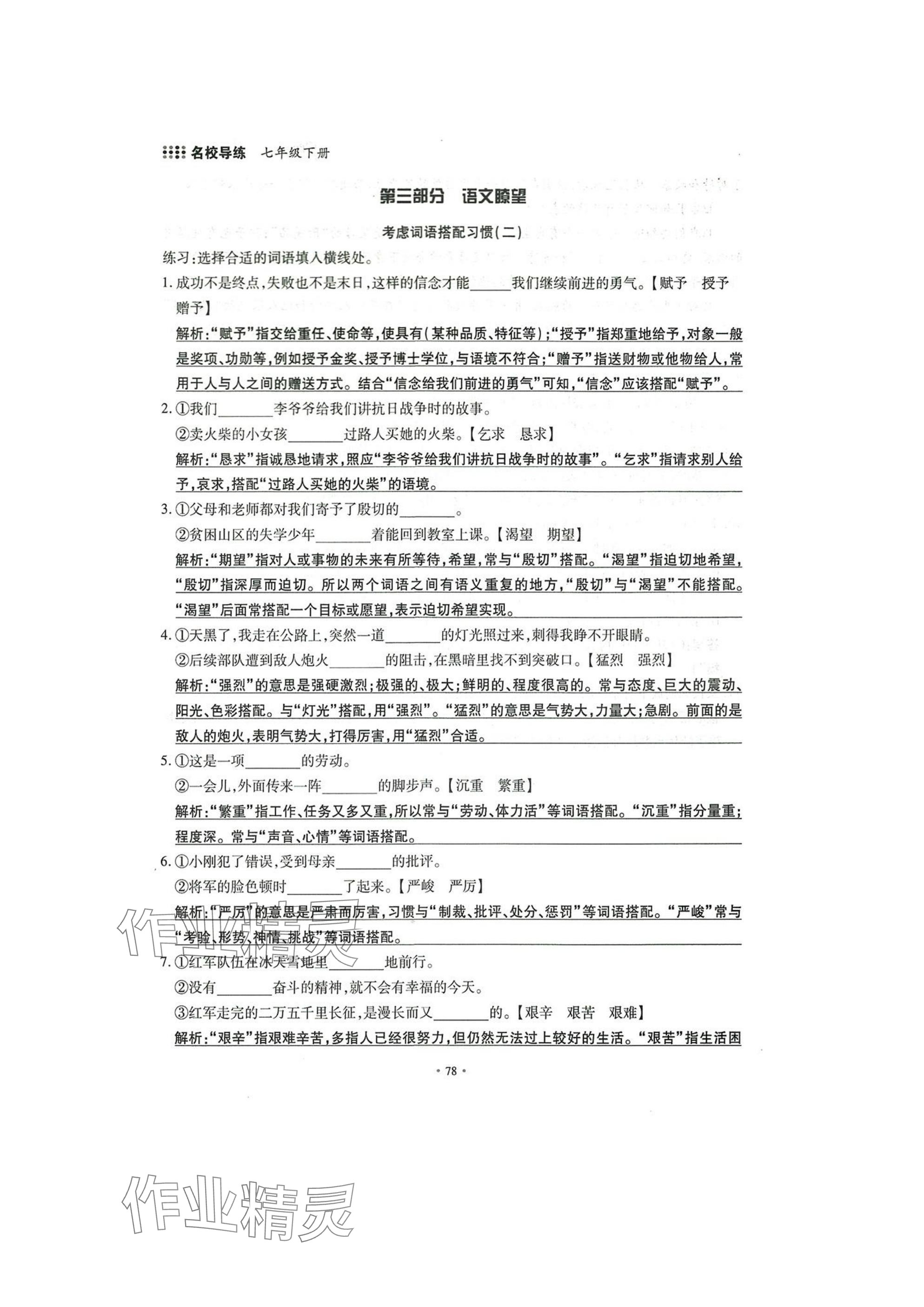 注:目前有些书本章节名称可能整理的还不是很完善,但都是按照顺序排列的,请同学们按照顺序仔细查找。练习册 2025年名校导练七年级语文下册人教版 答案主要是用来给同学们做完题方便对答案用的,请勿直接抄袭。