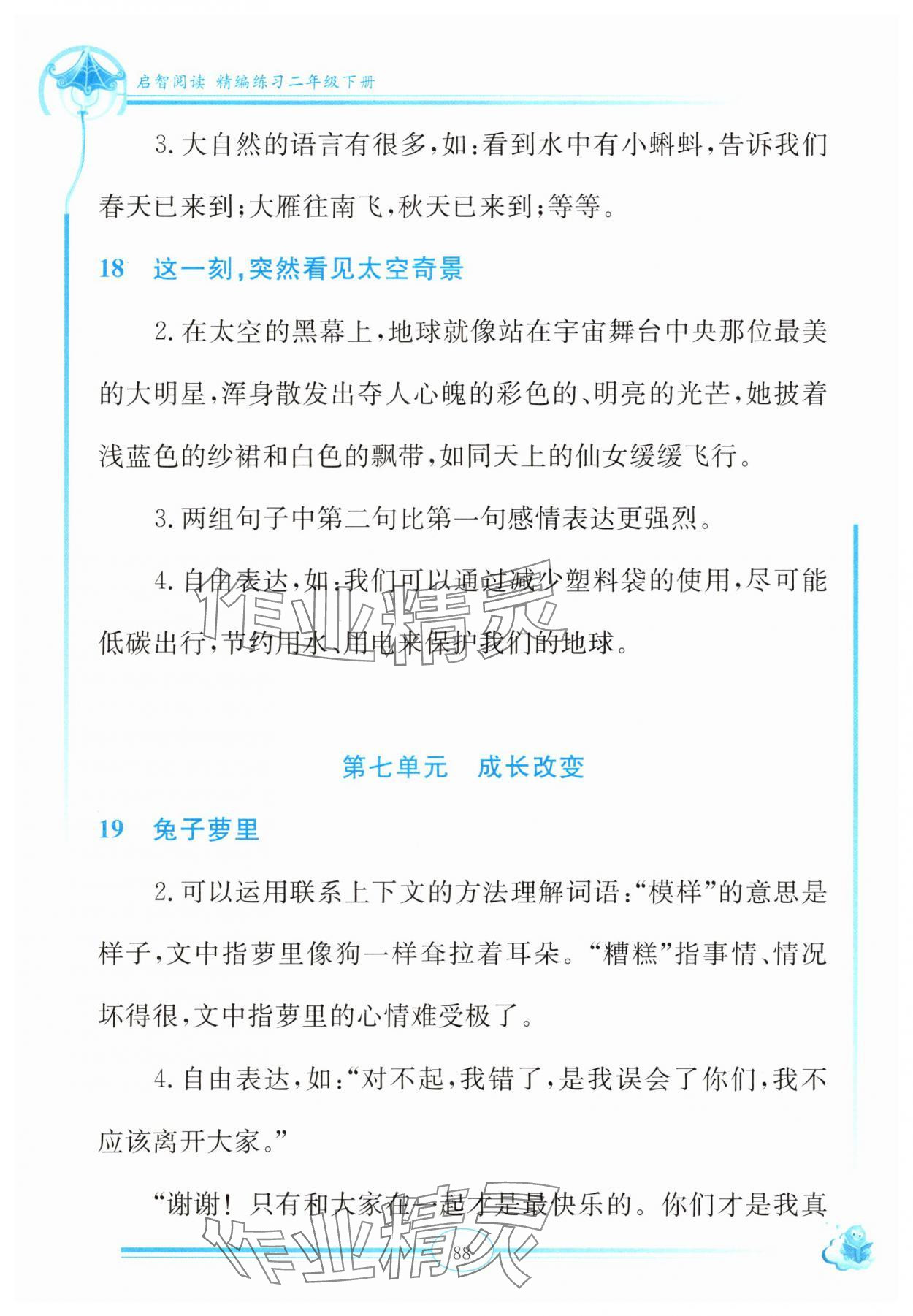 注:目前有些书本章节名称可能整理的还不是很完善,但都是按照顺序排列的,请同学们按照顺序仔细查找。练习册 2025年启智阅读精编练习二年级下册人教版 答案主要是用来给同学们做完题方便对答案用的,请勿直接抄袭。
