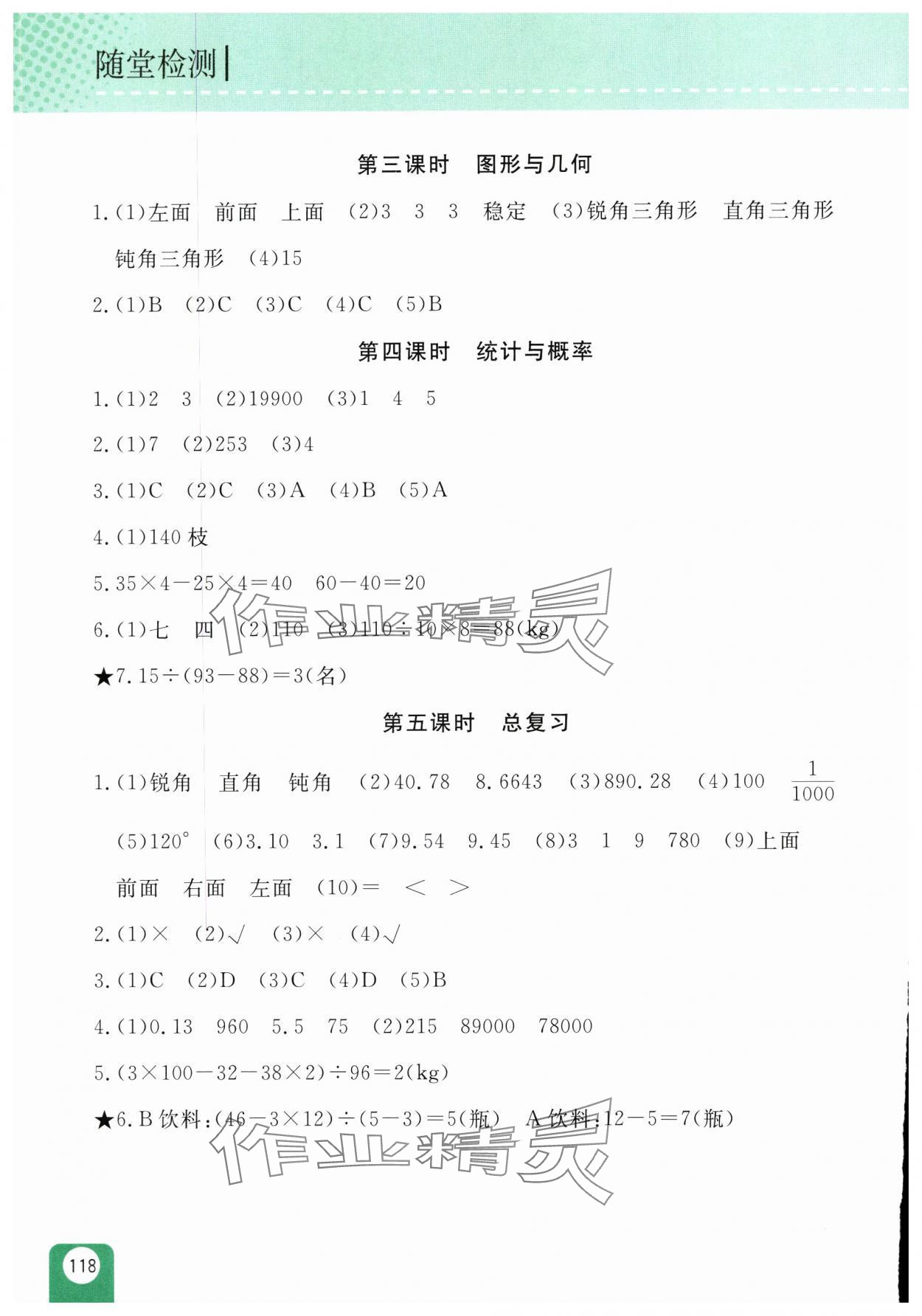 注:目前有些书本章节名称可能整理的还不是很完善,但都是按照顺序排列的,请同学们按照顺序仔细查找。练习册 2025年随堂检测四年级数学下册人教版双色版 答案主要是用来给同学们做完题方便对答案用的,请勿直接抄袭。