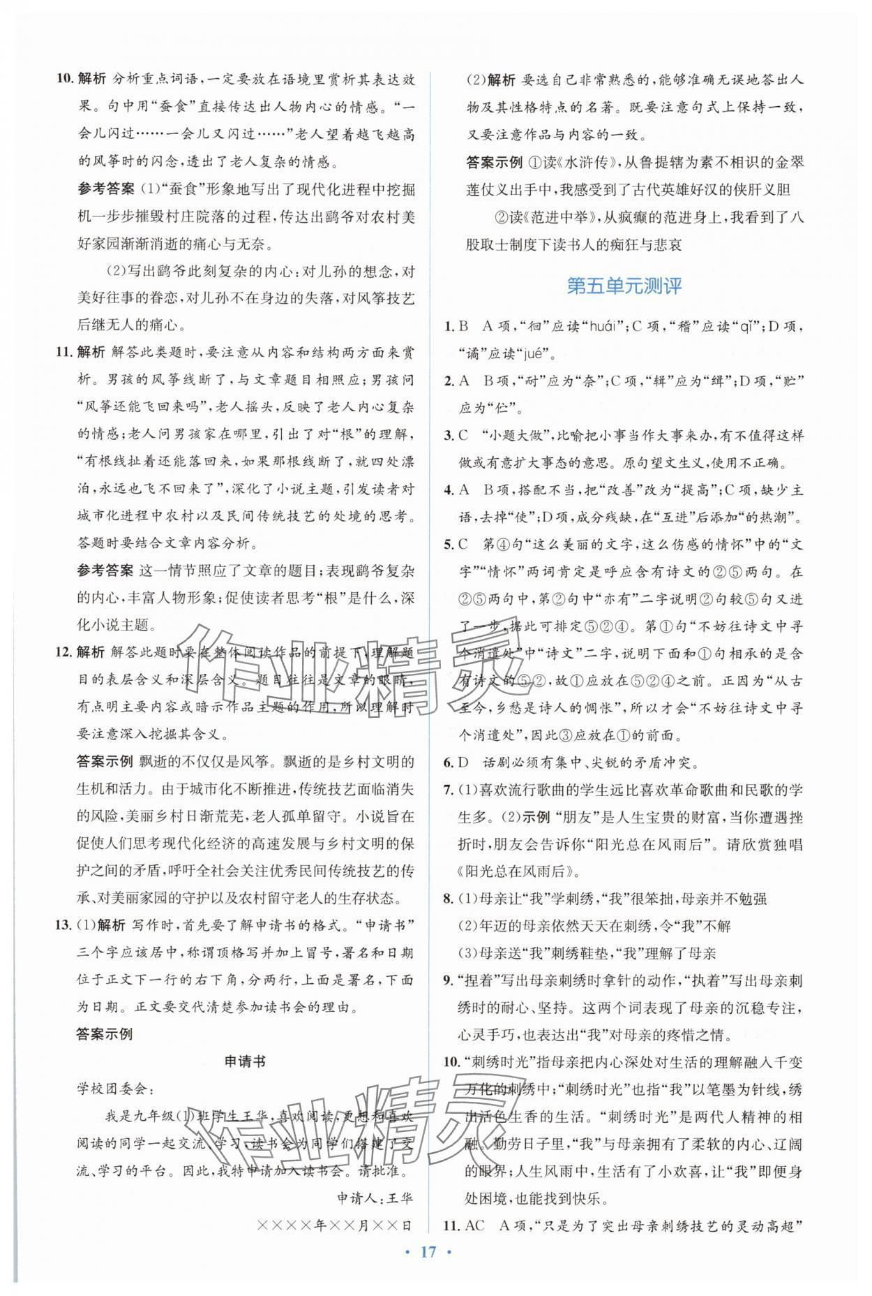 注:目前有些书本章节名称可能整理的还不是很完善,但都是按照顺序排列的,请同学们按照顺序仔细查找。练习册 2025年同步解析与测评学考练九年级语文下册人教版 答案主要是用来给同学们做完题方便对答案用的,请勿直接抄袭。