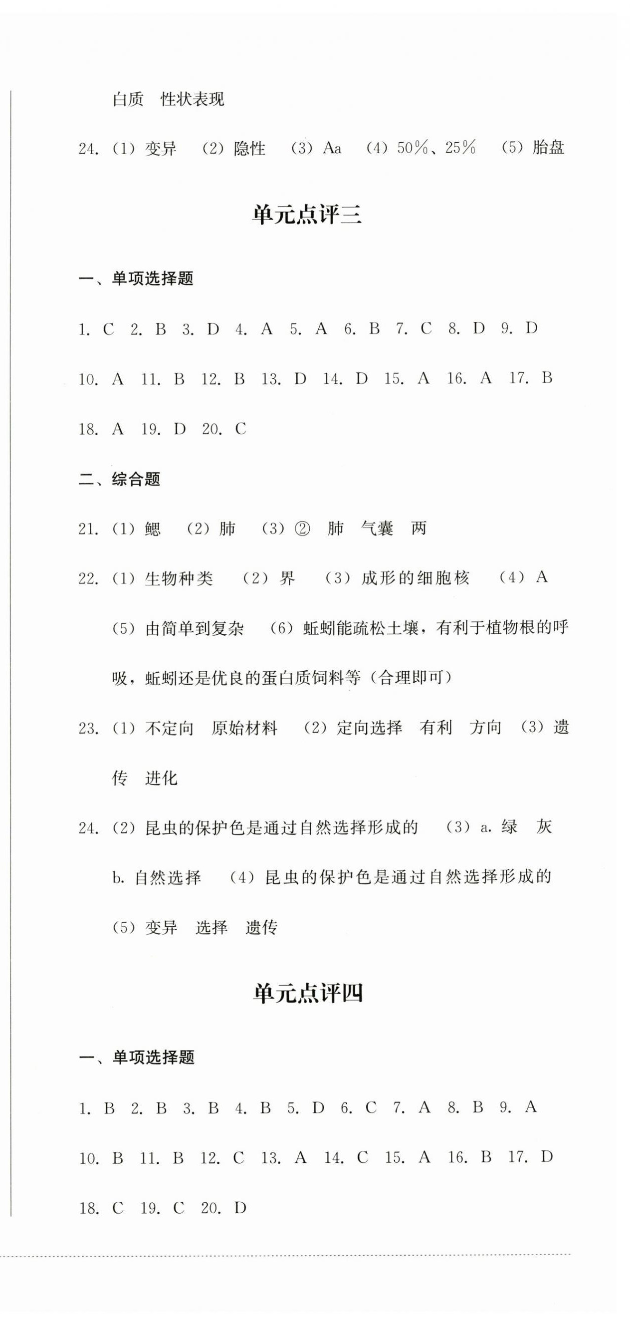 注:目前有些书本章节名称可能整理的还不是很完善,但都是按照顺序排列的,请同学们按照顺序仔细查找。练习册 2025年学情点评四川教育出版社八年级生物下册人教版 答案主要是用来给同学们做完题方便对答案用的,请勿直接抄袭。