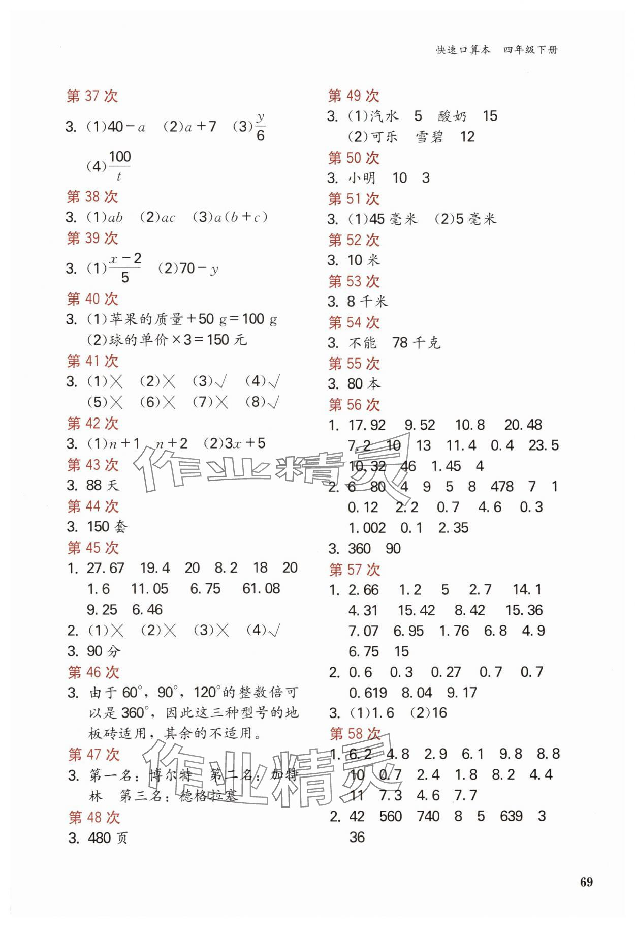 注:目前有些书本章节名称可能整理的还不是很完善,但都是按照顺序排列的,请同学们按照顺序仔细查找。练习册 2025年快速口算本四年级下册北师大版 答案主要是用来给同学们做完题方便对答案用的,请勿直接抄袭。