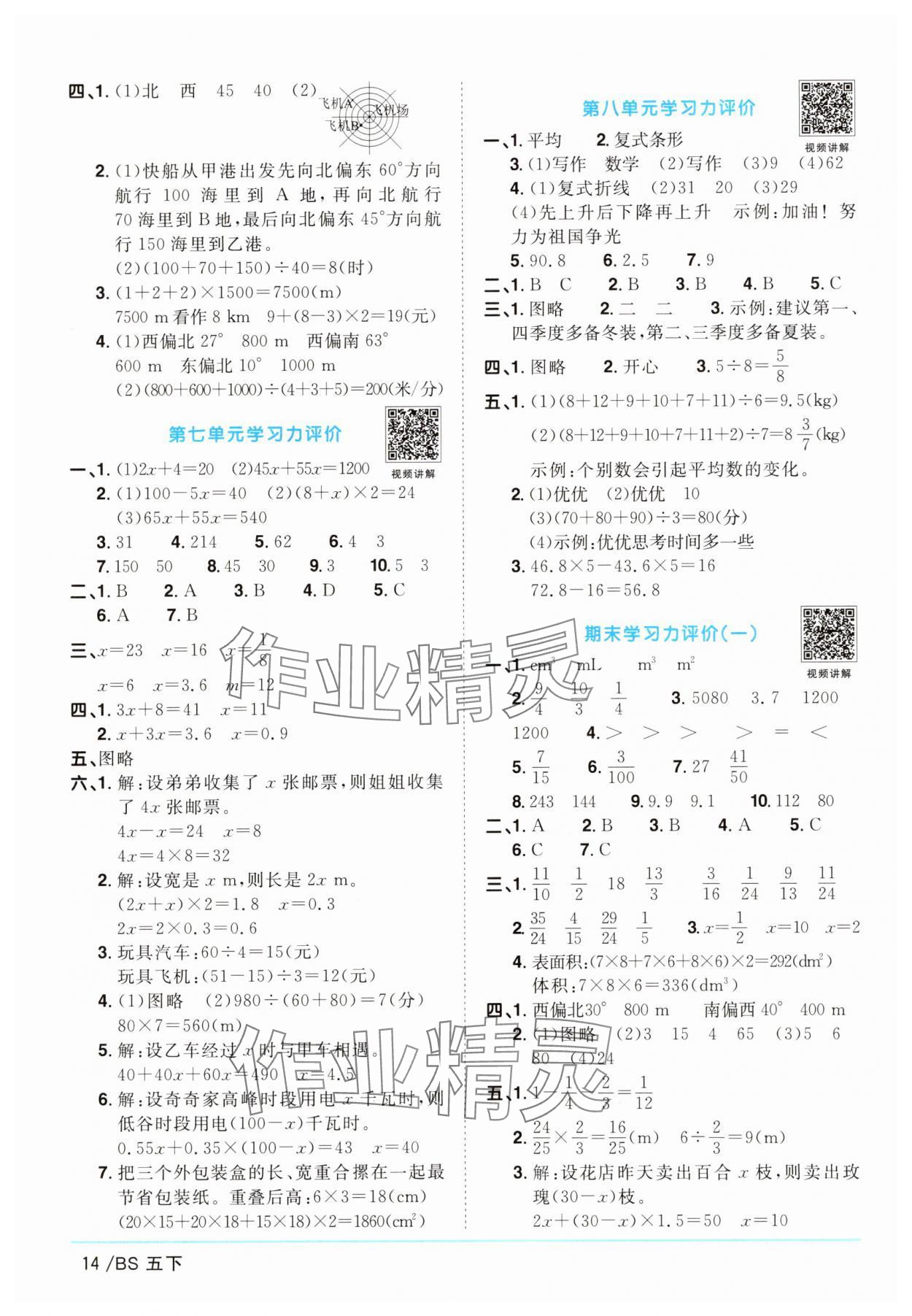 注:目前有些书本章节名称可能整理的还不是很完善,但都是按照顺序排列的,请同学们按照顺序仔细查找。练习册 2025年阳光同学课时优化作业五年级数学下册北师大版 答案主要是用来给同学们做完题方便对答案用的,请勿直接抄袭。
