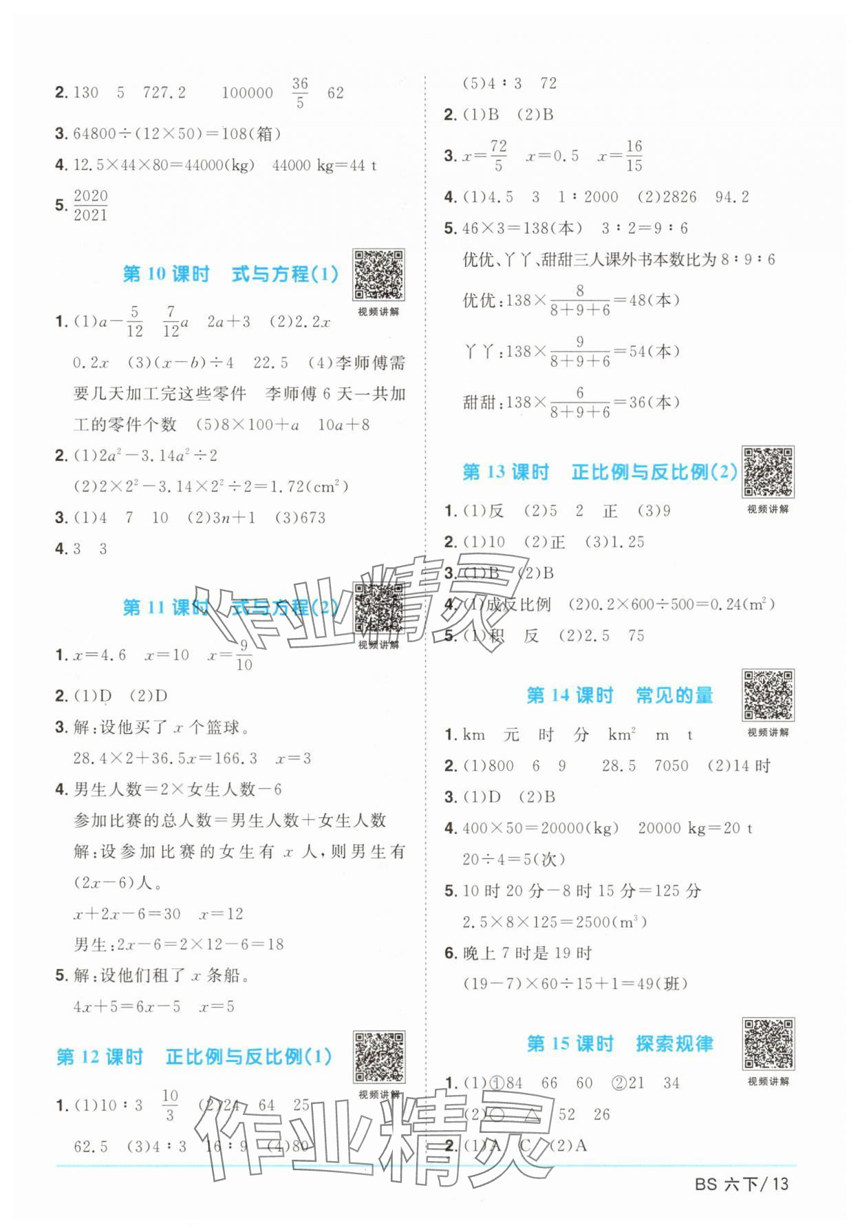 注:目前有些书本章节名称可能整理的还不是很完善,但都是按照顺序排列的,请同学们按照顺序仔细查找。练习册 2025年阳光同学课时优化作业六年级数学下册北师大版 答案主要是用来给同学们做完题方便对答案用的,请勿直接抄袭。