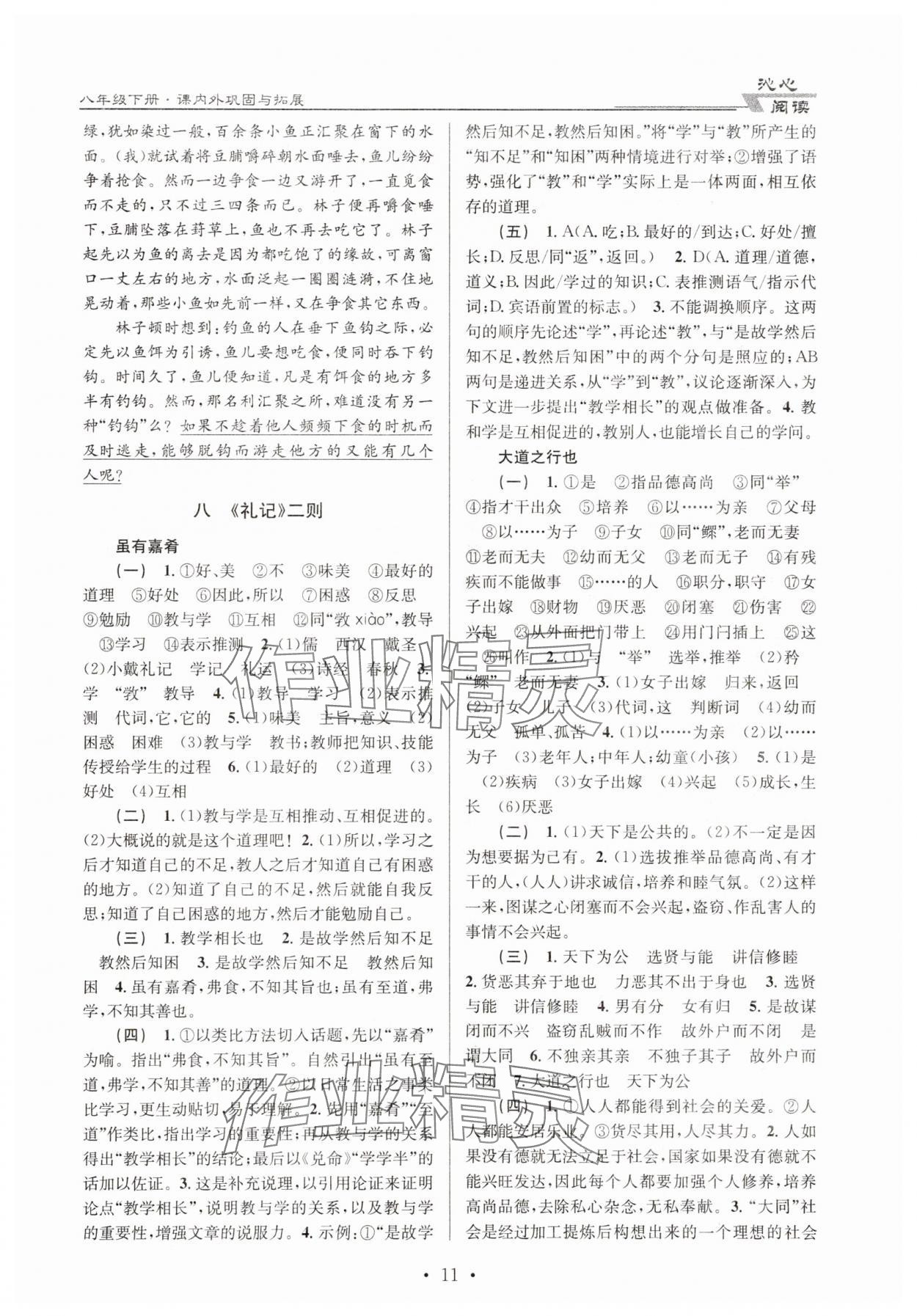 注:目前有些书本章节名称可能整理的还不是很完善,但都是按照顺序排列的,请同学们按照顺序仔细查找。练习册 2025年初中文言文课内外巩固与拓展八年级下册人教版 答案主要是用来给同学们做完题方便对答案用的,请勿直接抄袭。