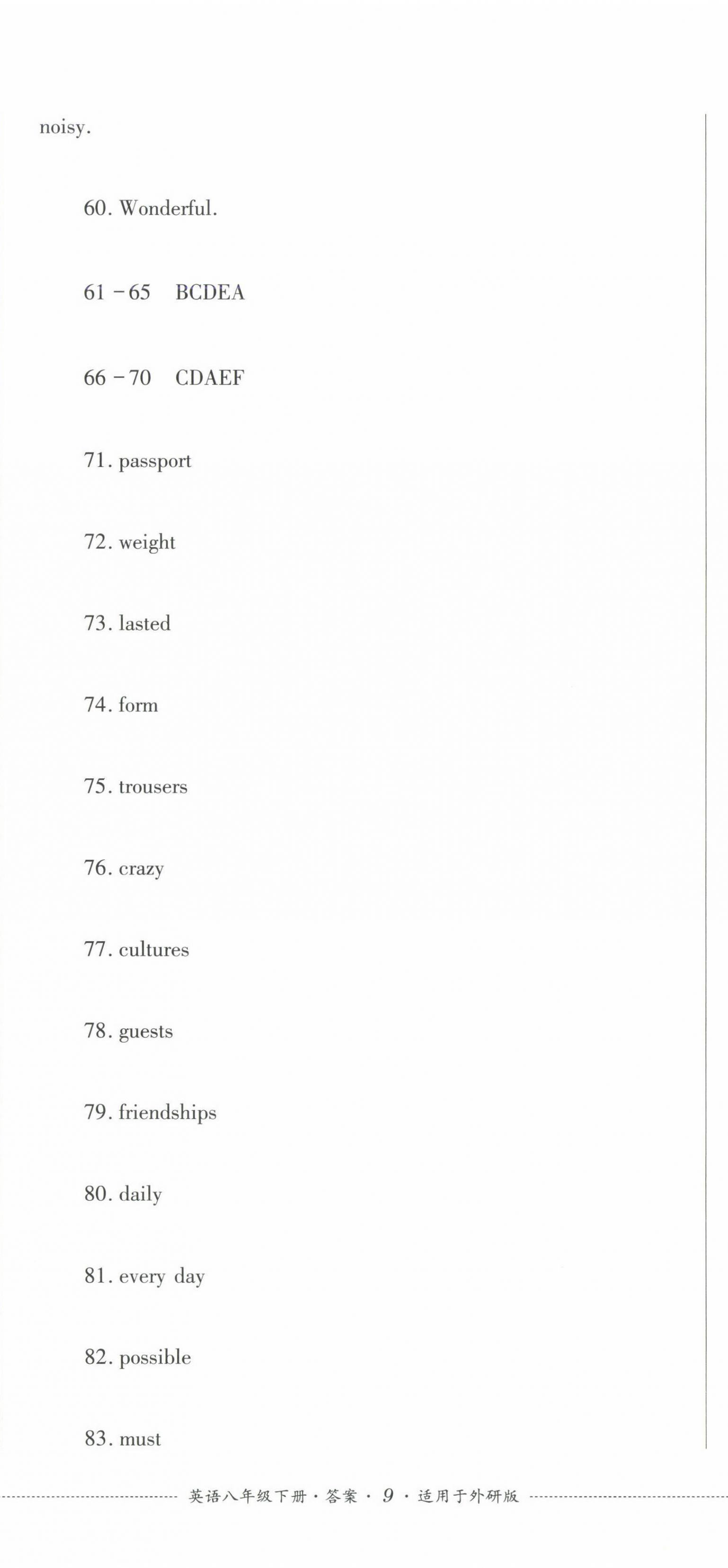 注:目前有些书本章节名称可能整理的还不是很完善,但都是按照顺序排列的,请同学们按照顺序仔细查找。练习册 2025年过关清单四川教育出版社八年级英语下册外研版 答案主要是用来给同学们做完题方便对答案用的,请勿直接抄袭。