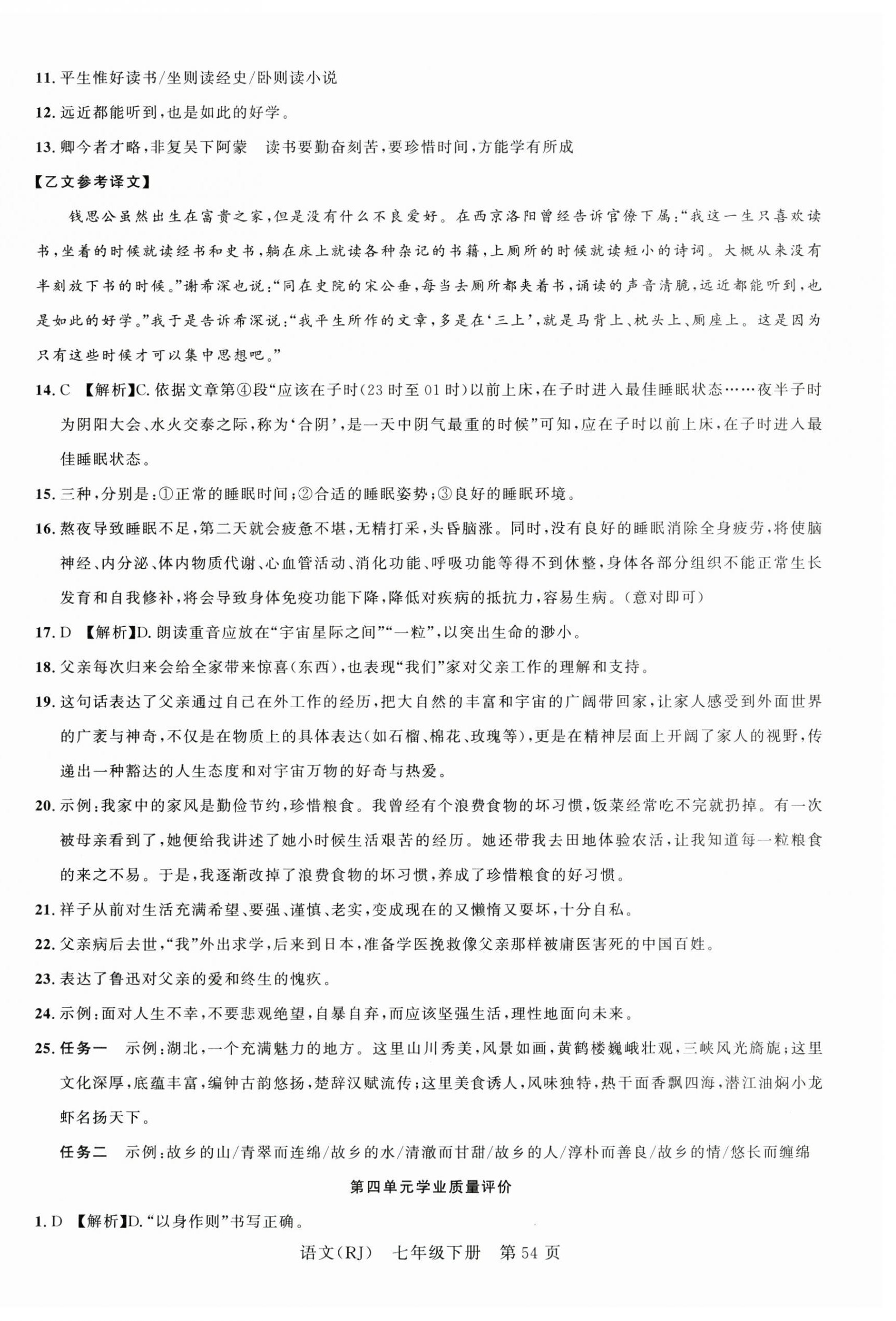 注:目前有些书本章节名称可能整理的还不是很完善,但都是按照顺序排列的,请同学们按照顺序仔细查找。练习册 2025年课时夺冠七年级语文下册人教版 答案主要是用来给同学们做完题方便对答案用的,请勿直接抄袭。