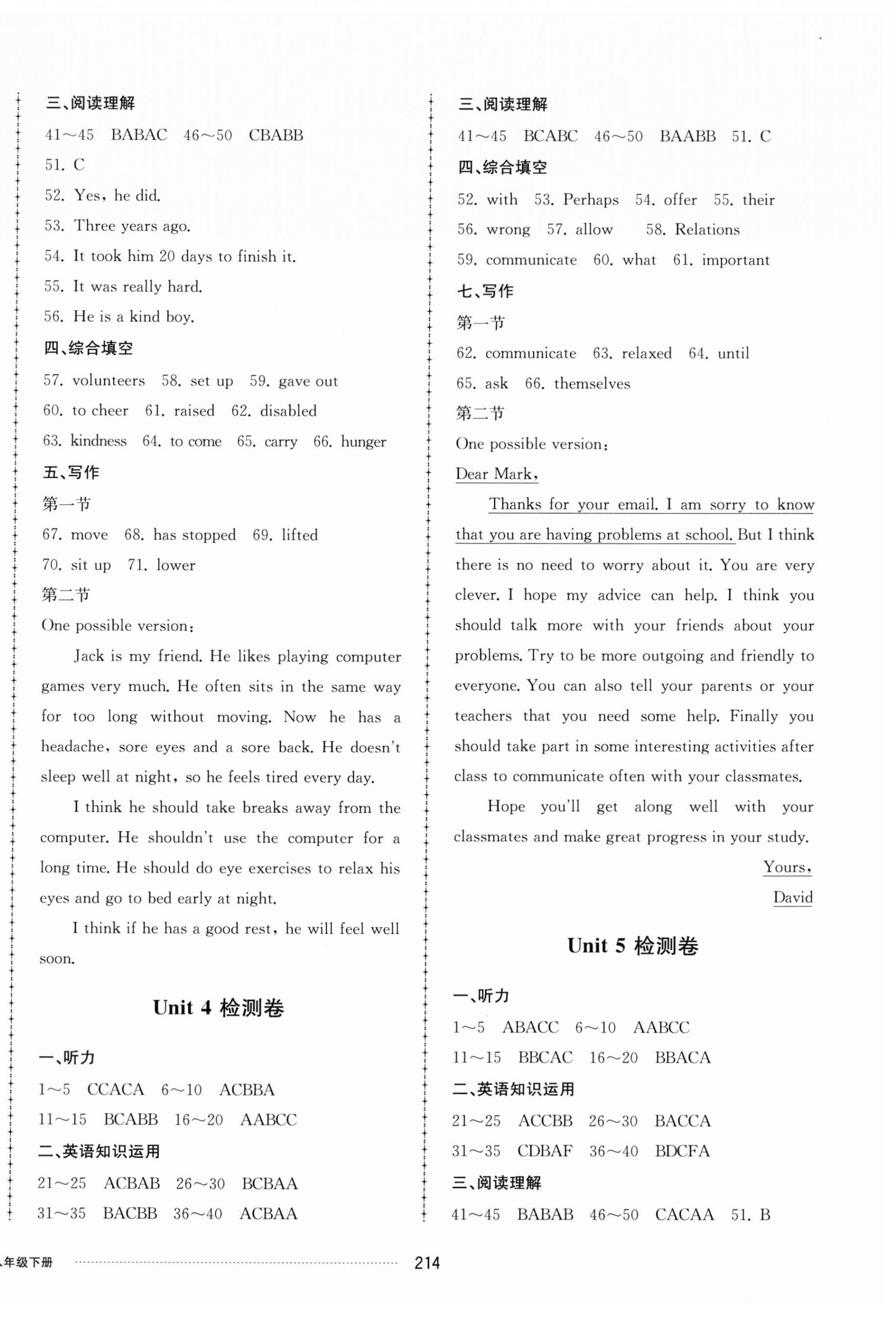 注:目前有些书本章节名称可能整理的还不是很完善,但都是按照顺序排列的,请同学们按照顺序仔细查找。练习册 2025年同步练习册配套单元检测卷八年级英语下册人教版 答案主要是用来给同学们做完题方便对答案用的,请勿直接抄袭。