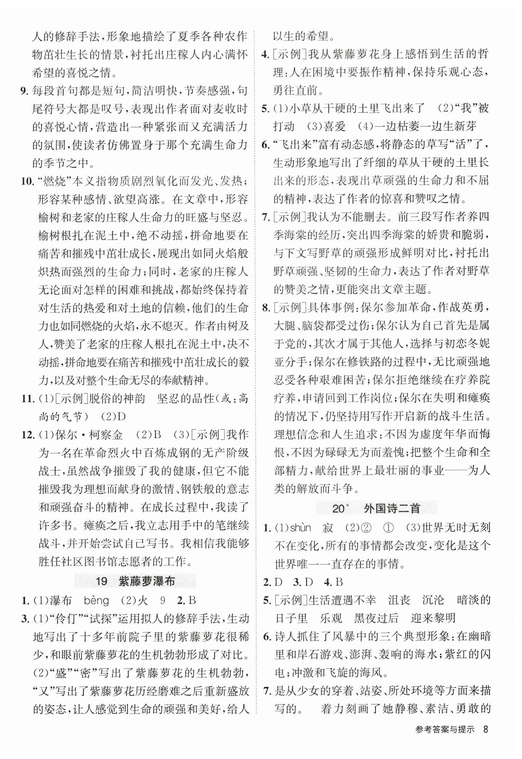 注:目前有些书本章节名称可能整理的还不是很完善,但都是按照顺序排列的,请同学们按照顺序仔细查找。练习册 2025年课时训练家庭作业七年级语文下册人教版 答案主要是用来给同学们做完题方便对答案用的,请勿直接抄袭。