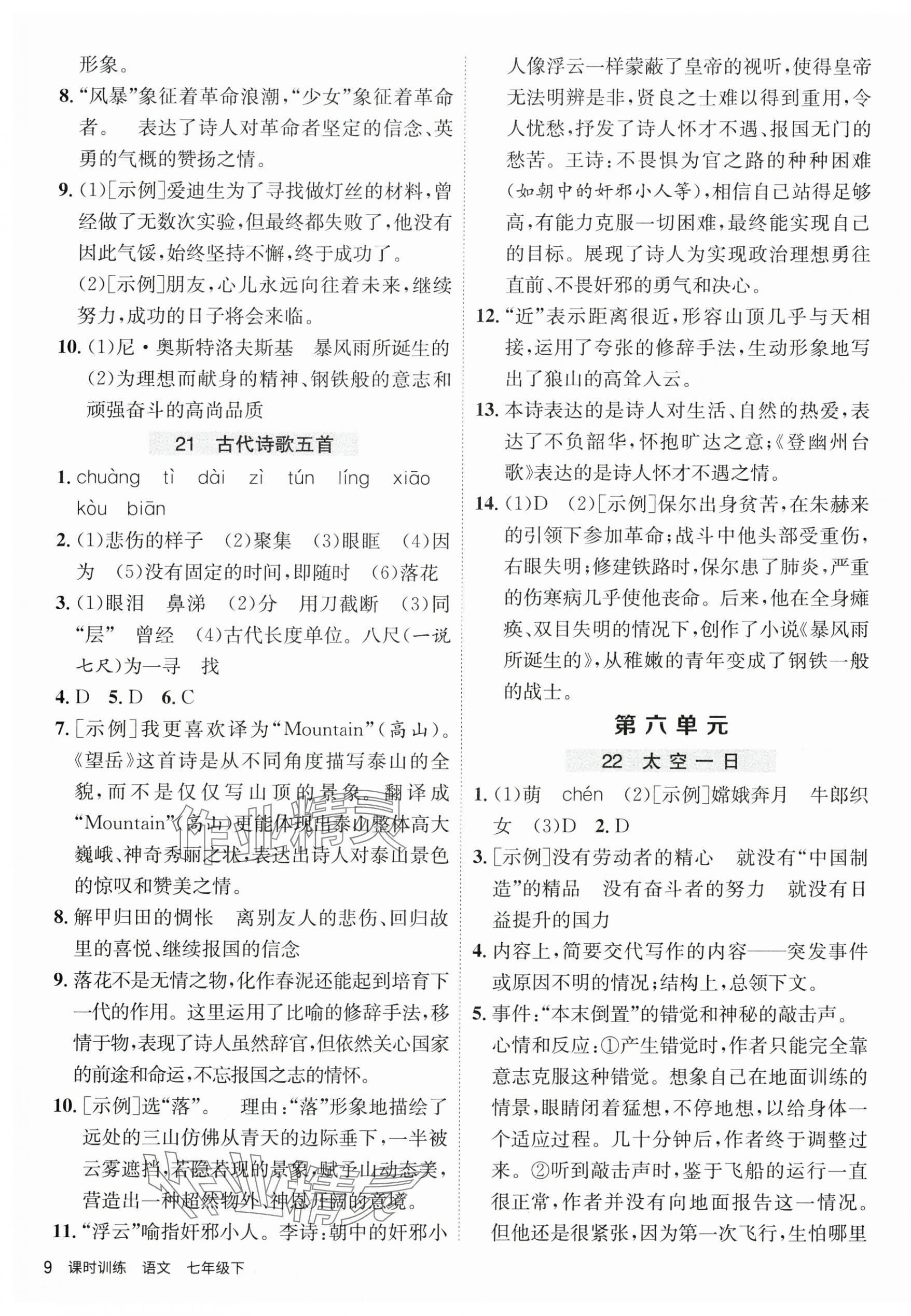注:目前有些书本章节名称可能整理的还不是很完善,但都是按照顺序排列的,请同学们按照顺序仔细查找。练习册 2025年课时训练家庭作业七年级语文下册人教版 答案主要是用来给同学们做完题方便对答案用的,请勿直接抄袭。