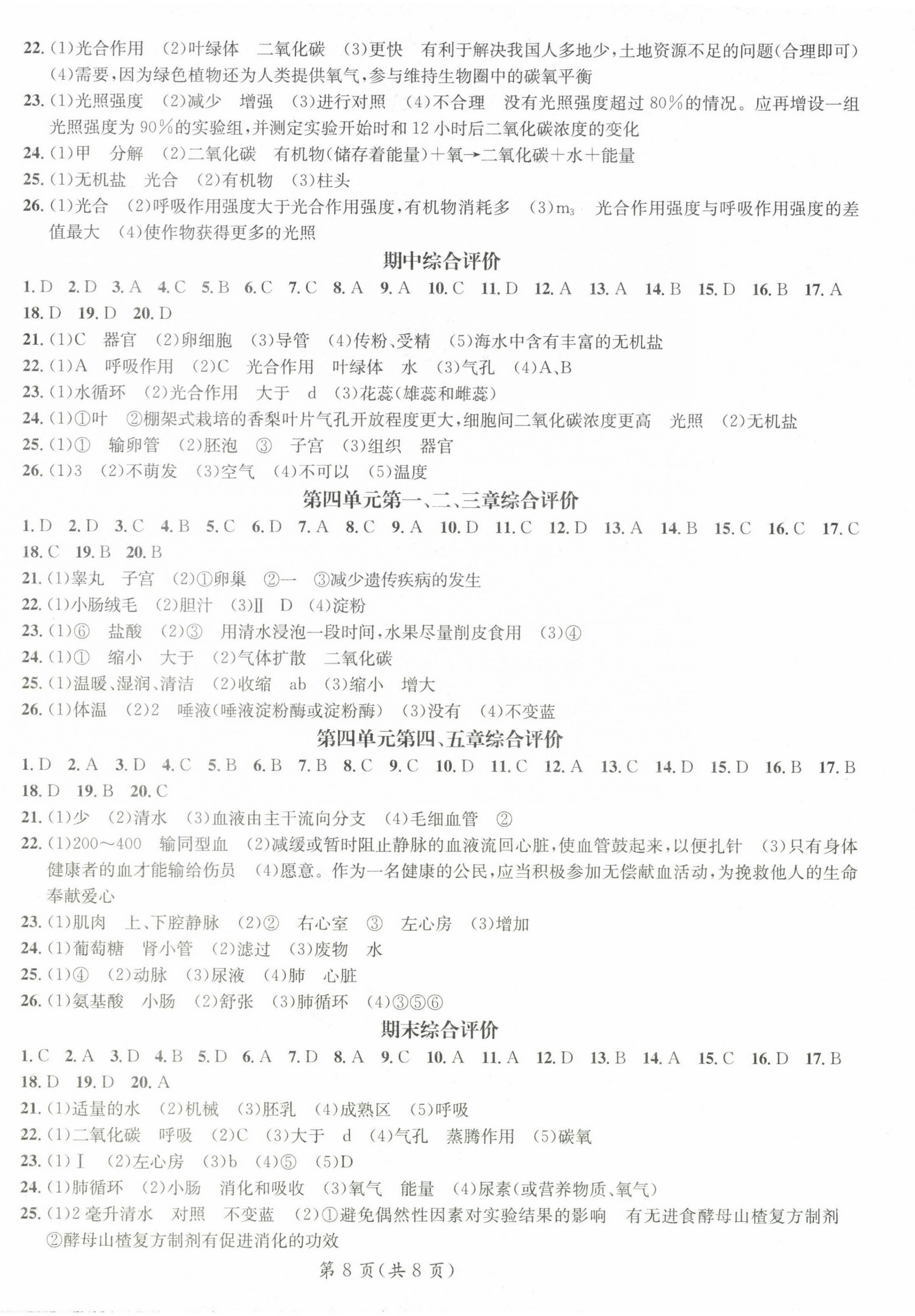 注:目前有些书本章节名称可能整理的还不是很完善,但都是按照顺序排列的,请同学们按照顺序仔细查找。练习册 2025年名师测控七年级生物下册人教版 答案主要是用来给同学们做完题方便对答案用的,请勿直接抄袭。