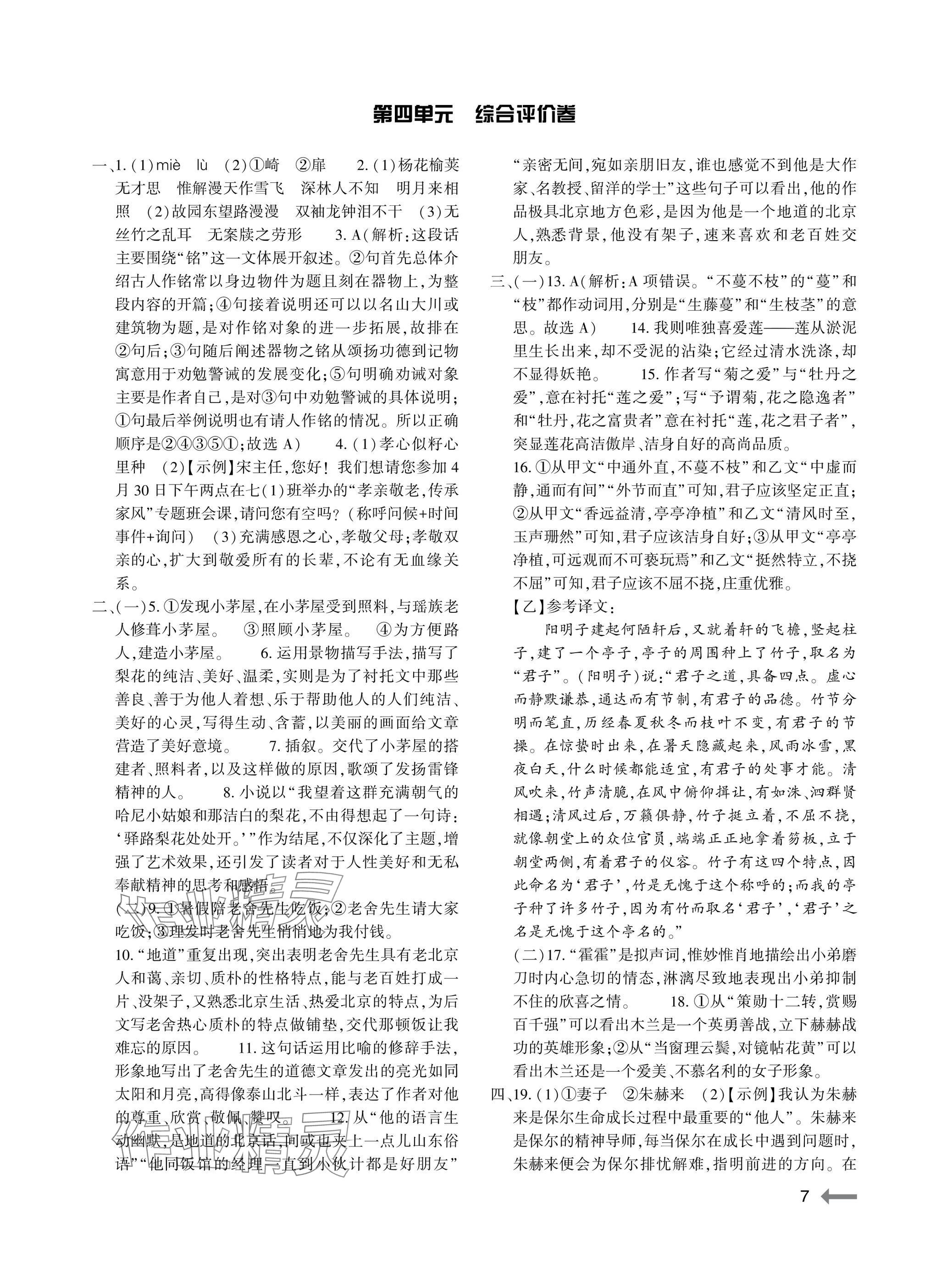 注:目前有些书本章节名称可能整理的还不是很完善,但都是按照顺序排列的,请同学们按照顺序仔细查找。练习册 2025年节节高大象出版社七年级语文下册人教版 答案主要是用来给同学们做完题方便对答案用的,请勿直接抄袭。
