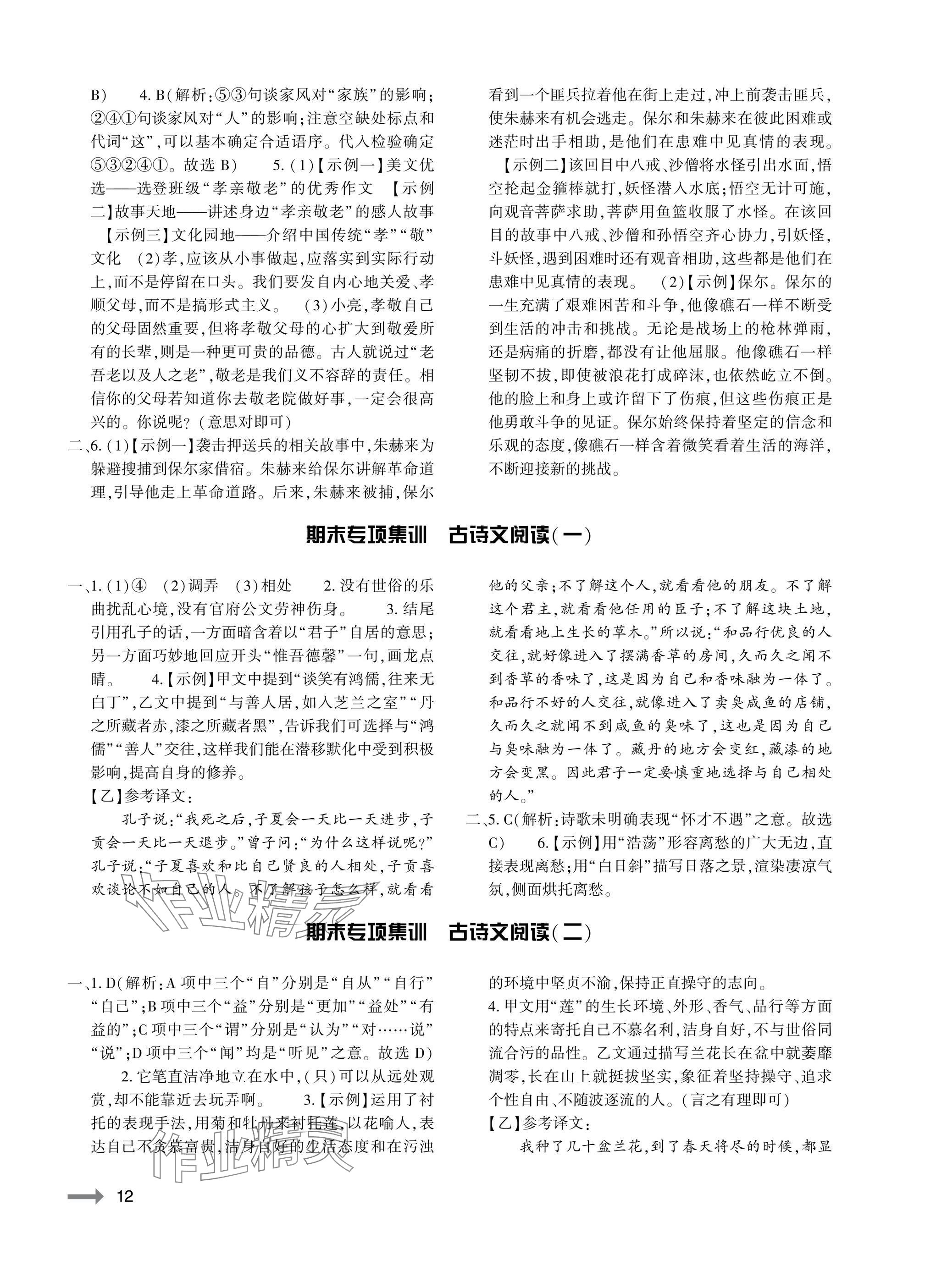 注:目前有些书本章节名称可能整理的还不是很完善,但都是按照顺序排列的,请同学们按照顺序仔细查找。练习册 2025年节节高大象出版社七年级语文下册人教版 答案主要是用来给同学们做完题方便对答案用的,请勿直接抄袭。