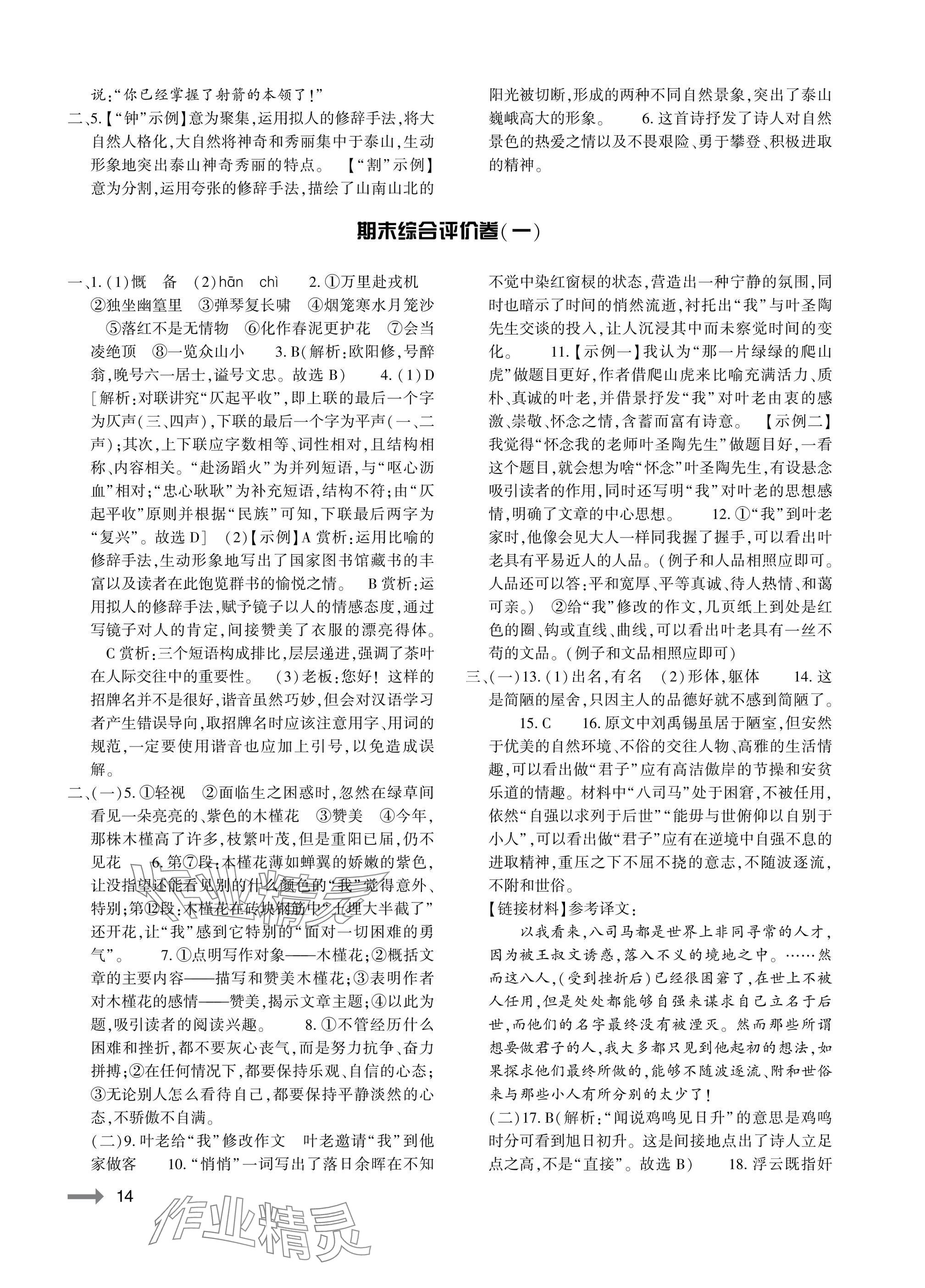 注:目前有些书本章节名称可能整理的还不是很完善,但都是按照顺序排列的,请同学们按照顺序仔细查找。练习册 2025年节节高大象出版社七年级语文下册人教版 答案主要是用来给同学们做完题方便对答案用的,请勿直接抄袭。