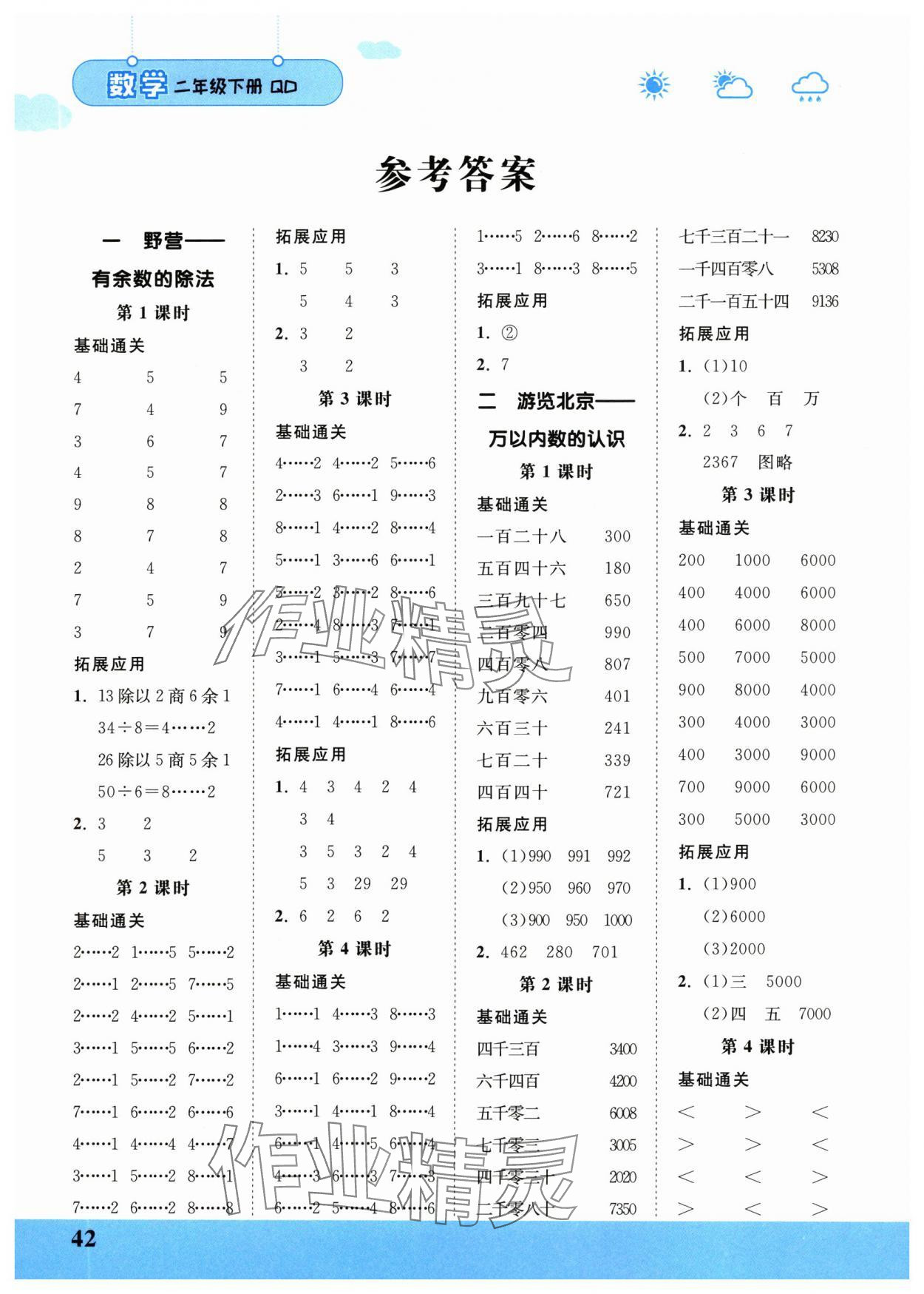 注:目前有些书本章节名称可能整理的还不是很完善,但都是按照顺序排列的,请同学们按照顺序仔细查找。练习册 2025年夺冠小状元课时作业本二年级数学下册青岛版 答案主要是用来给同学们做完题方便对答案用的,请勿直接抄袭。