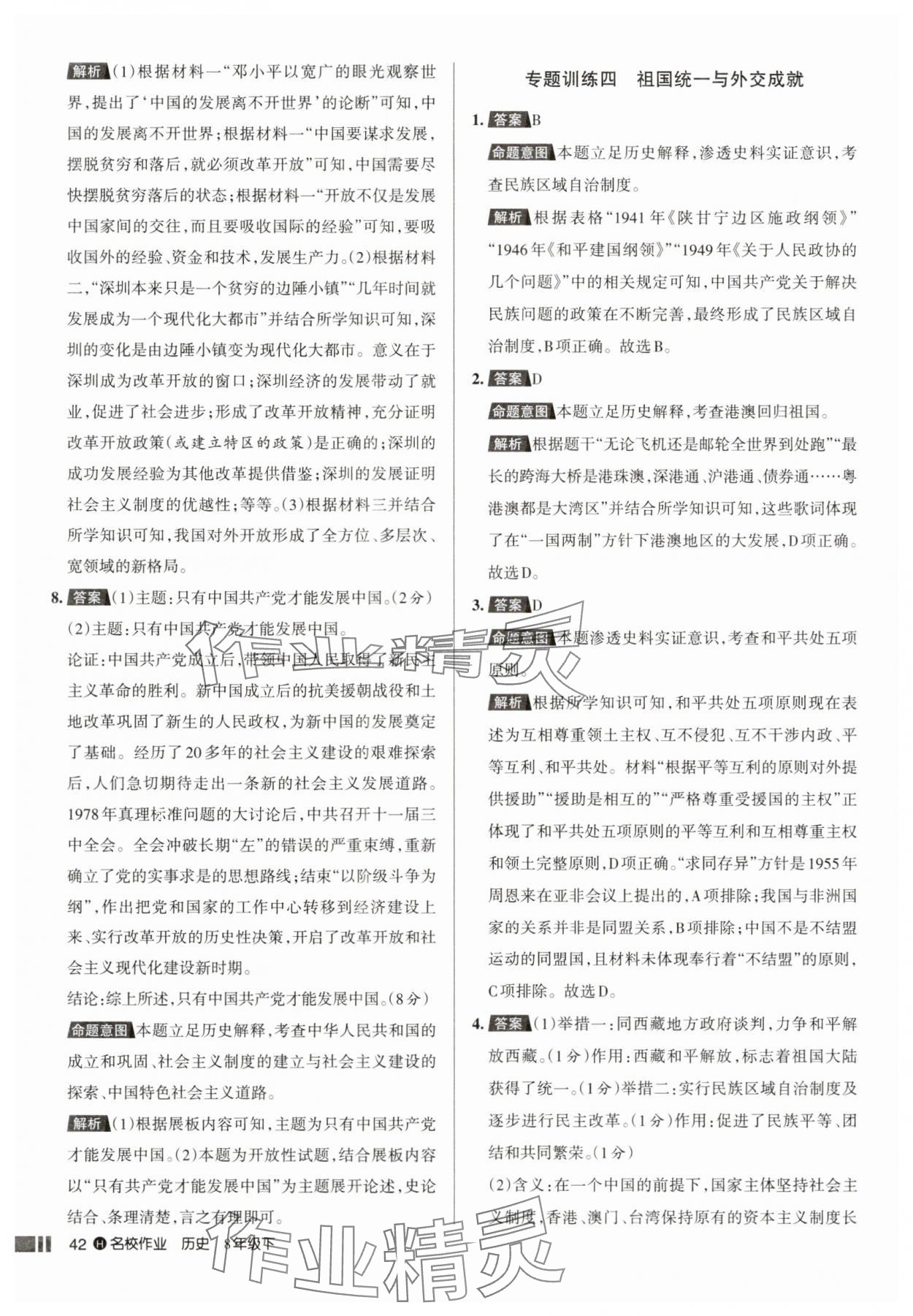 注:目前有些书本章节名称可能整理的还不是很完善,但都是按照顺序排列的,请同学们按照顺序仔细查找。练习册 2025年名校作业八年级历史下册人教版湖北专版 答案主要是用来给同学们做完题方便对答案用的,请勿直接抄袭。