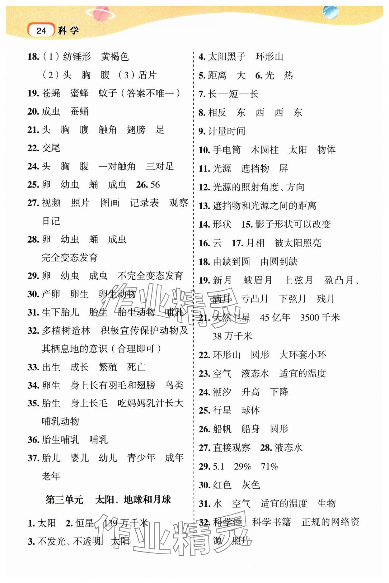 注:目前有些书本章节名称可能整理的还不是很完善,但都是按照顺序排列的,请同学们按照顺序仔细查找。练习册 2025年名师面对面科学满分宝三年级下册教科版 答案主要是用来给同学们做完题方便对答案用的,请勿直接抄袭。